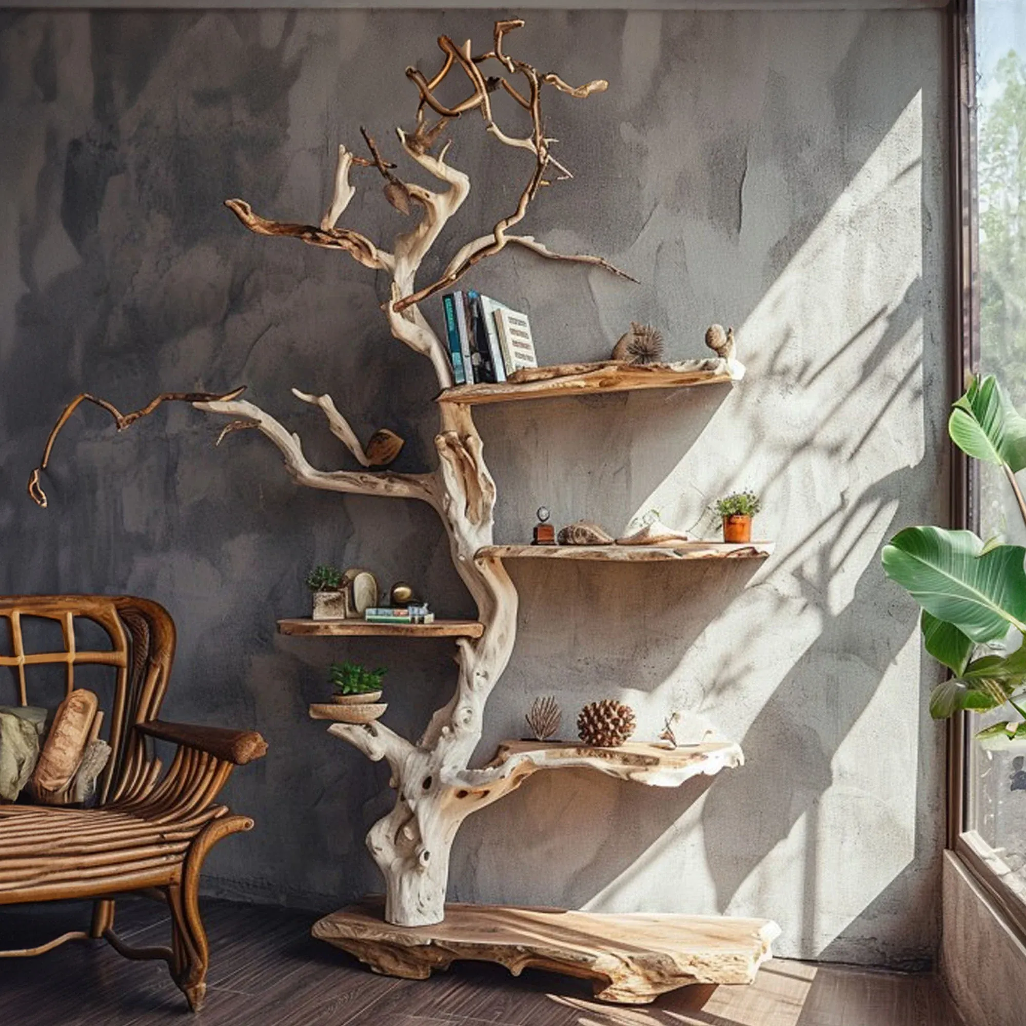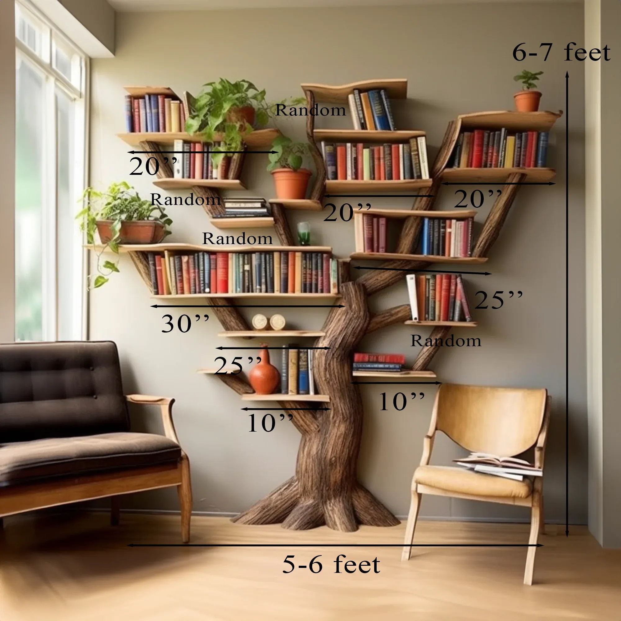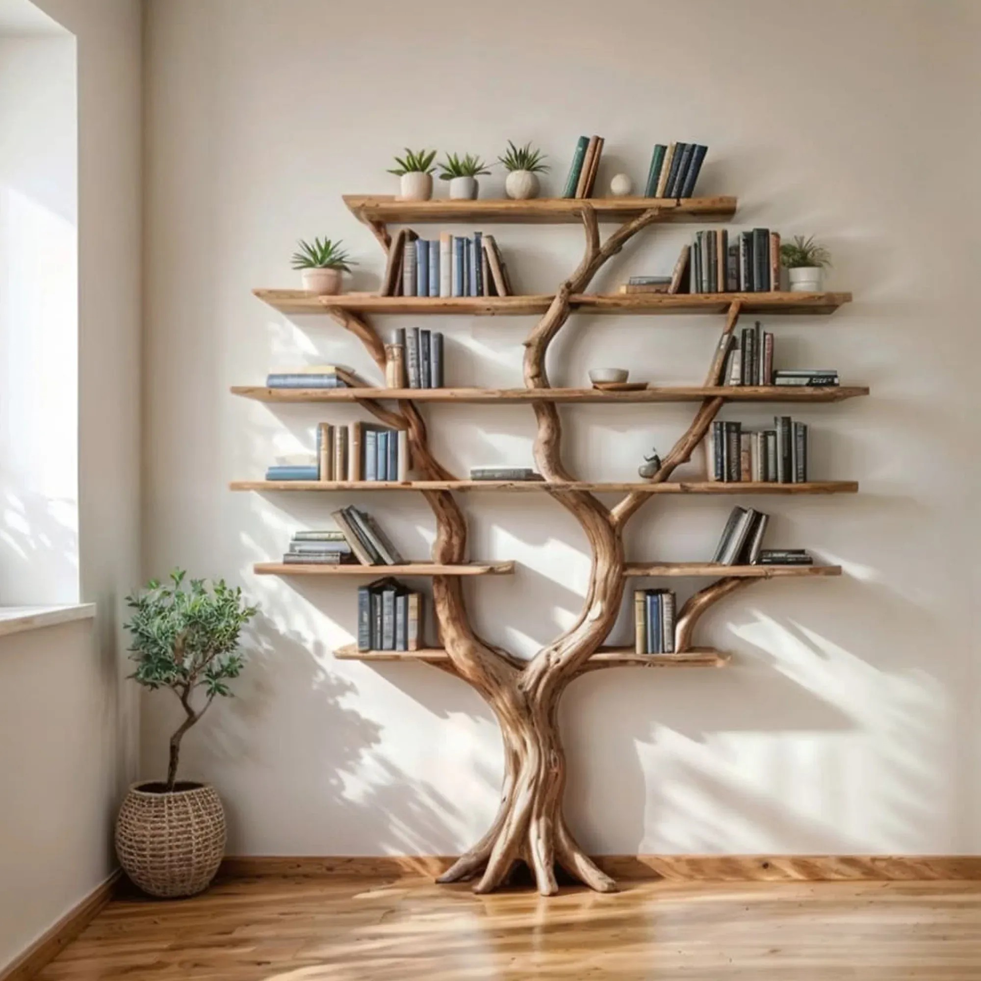 Tree Bookshelf Solid Wood Bookcase SINLTB058$37.65 USD