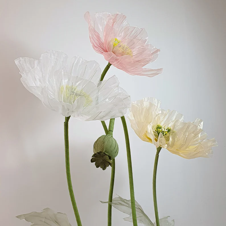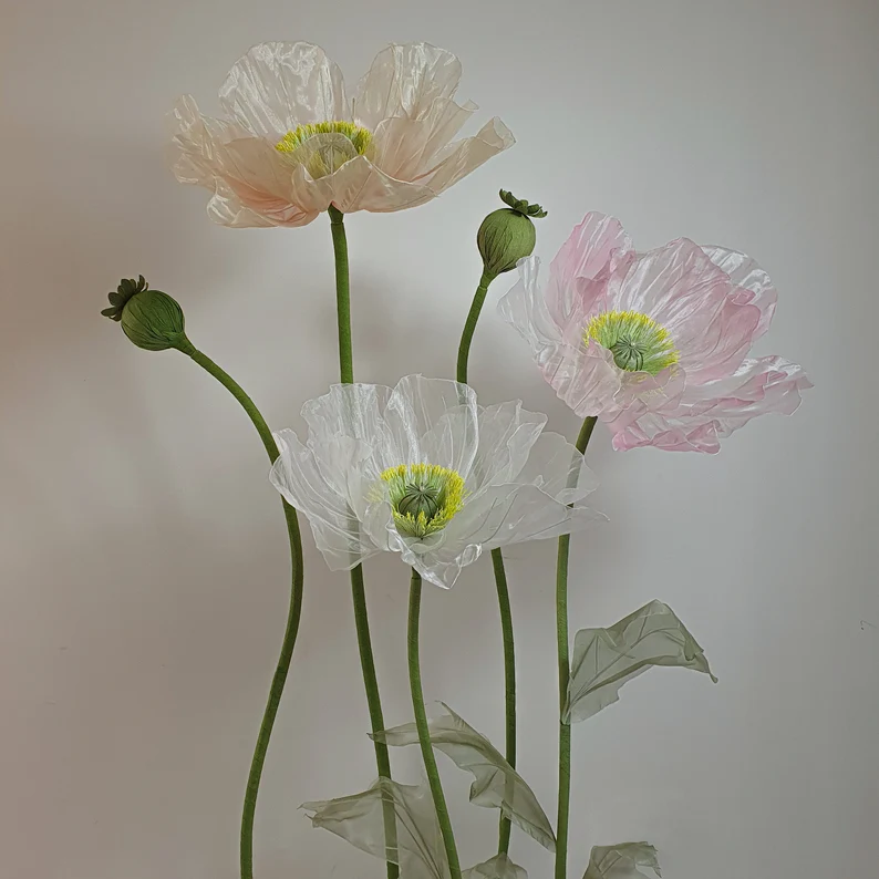 Material of flower: Crepe paper, silk, organza