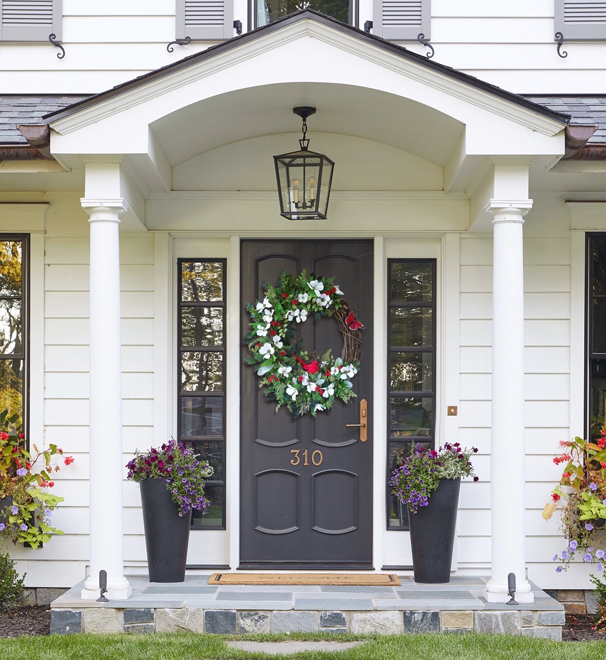 This elegant wreath will be sprayed for extra protection and in the options also choose for outdoor or indoor use. When ordered this original wreath is wired in a box along with tissue paper to protect it during shipping.