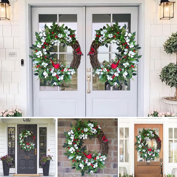Every time before spring comes, I want to make a spring wreath depicting the flowers, butterflies and birds we see all around us. So I made this Cardinal Dogwood Wreath. When I hung it on the door, my neighbor came and asked me where I got it less than 20 minutes later, she was surprised when she knew I made it myself, and suggested I put it this beautiful wreath is shared, so I decided to sell it in the online store.