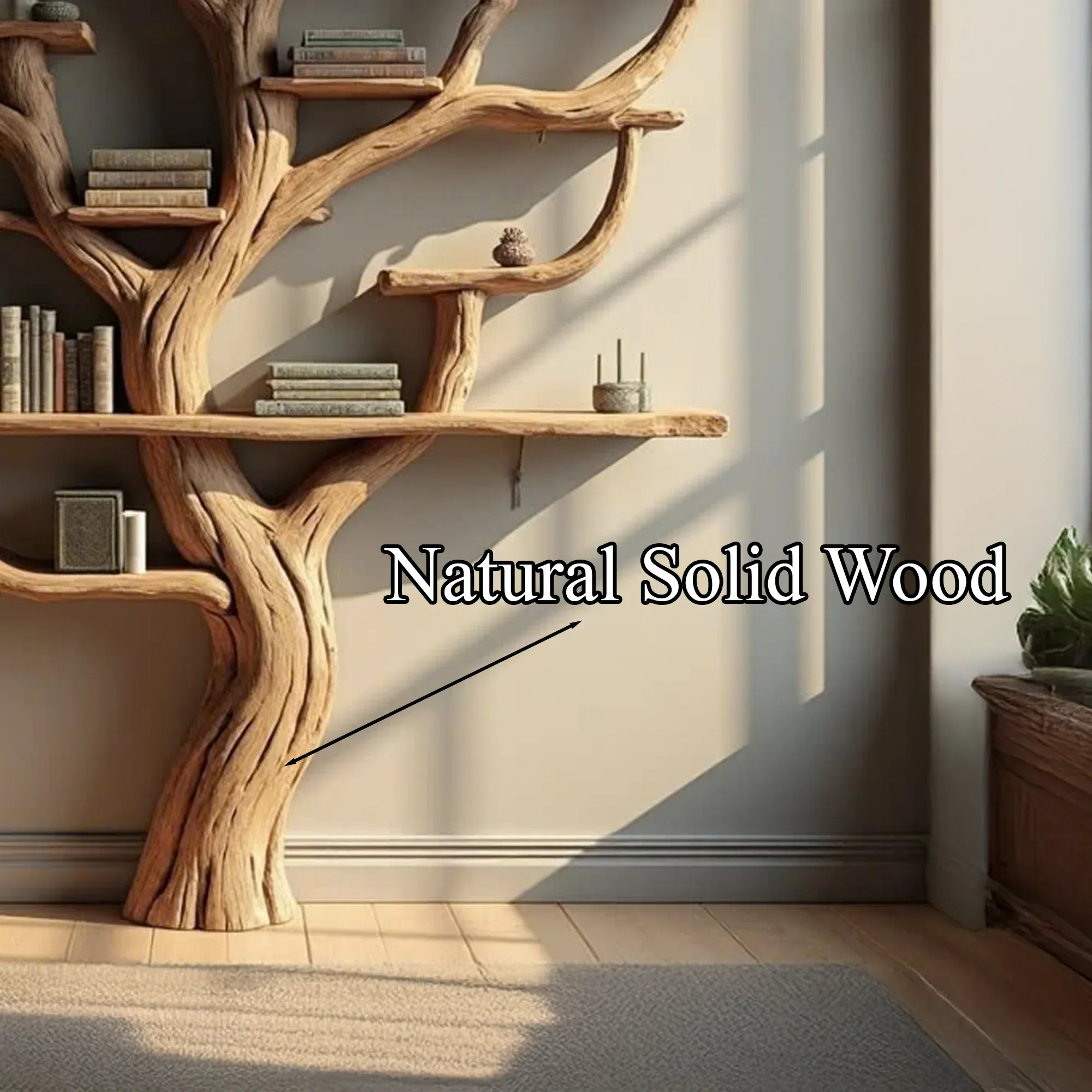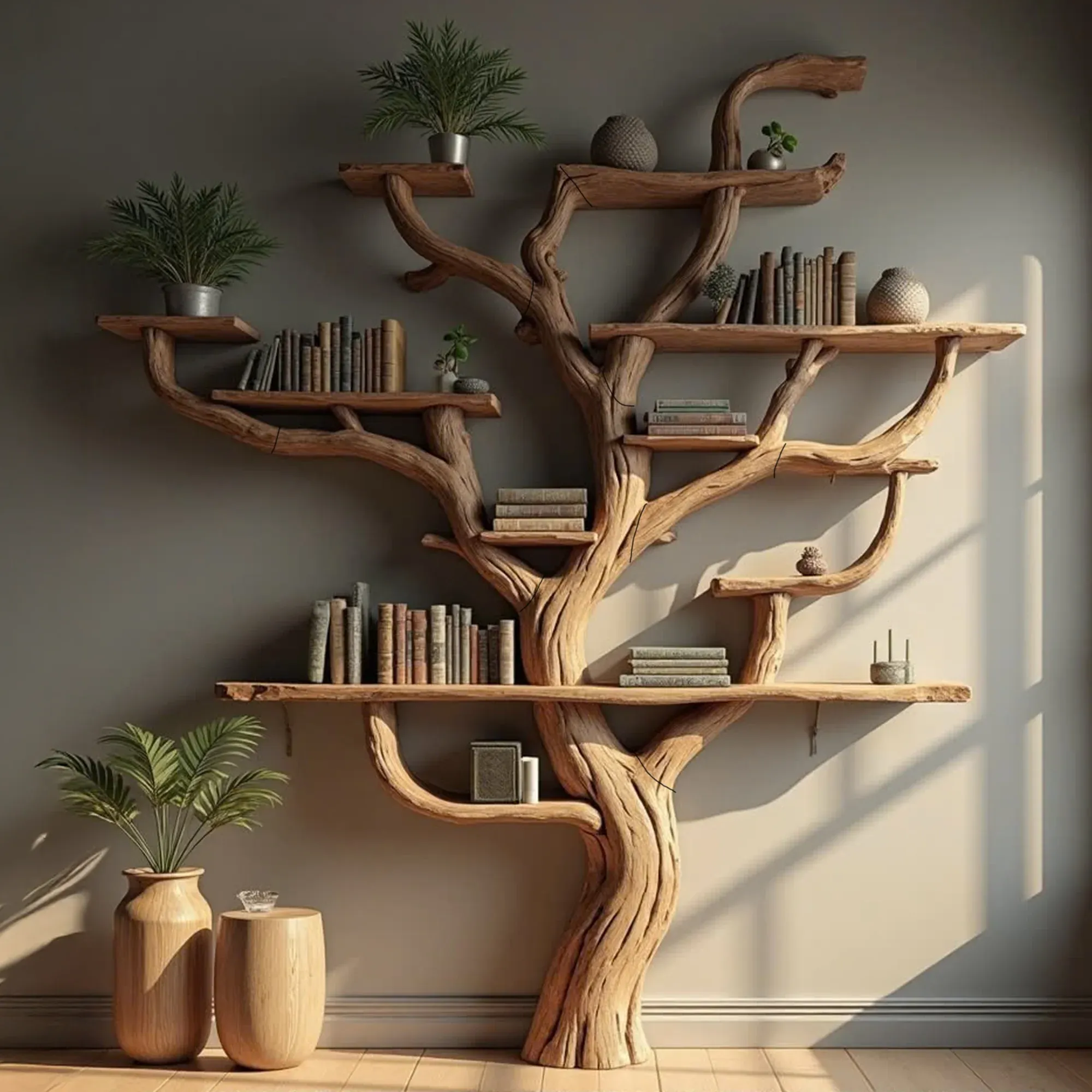 Our tree-shaped bookshelves are carefully handcrafted, with each branch showcasing its natural beauty and uniqueness. Since real tree branches are used, every piece is one-of-a-kind, ensuring no two bookshelves are ever the same.