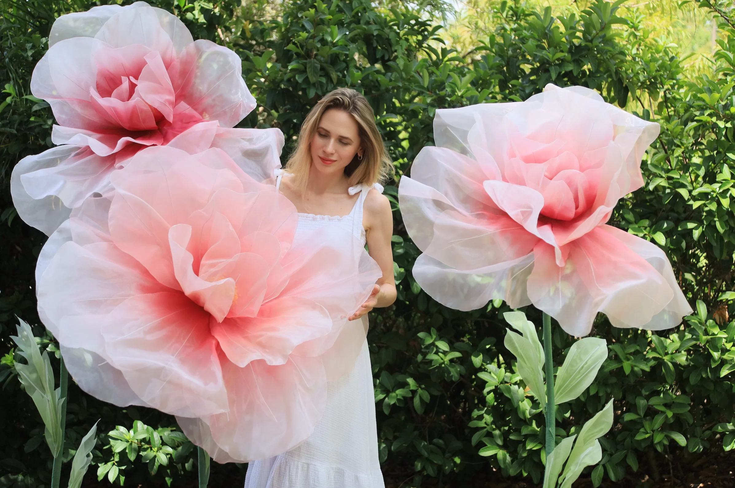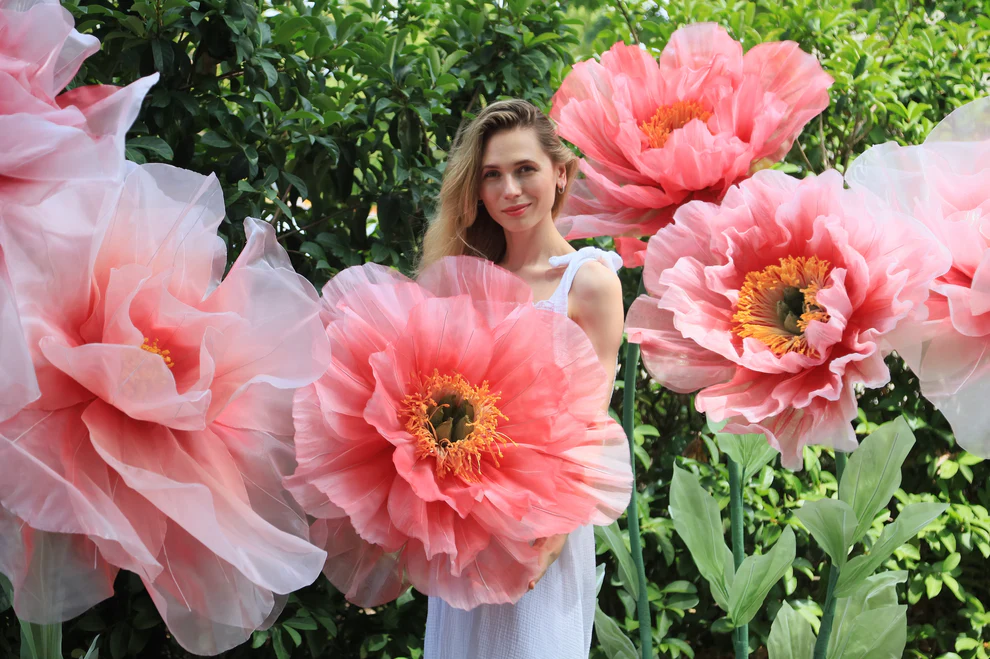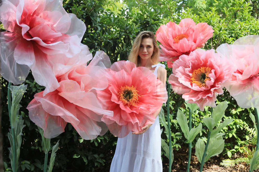 Custom Design Giant Silk Organza Peonies Set with Stems and Bases