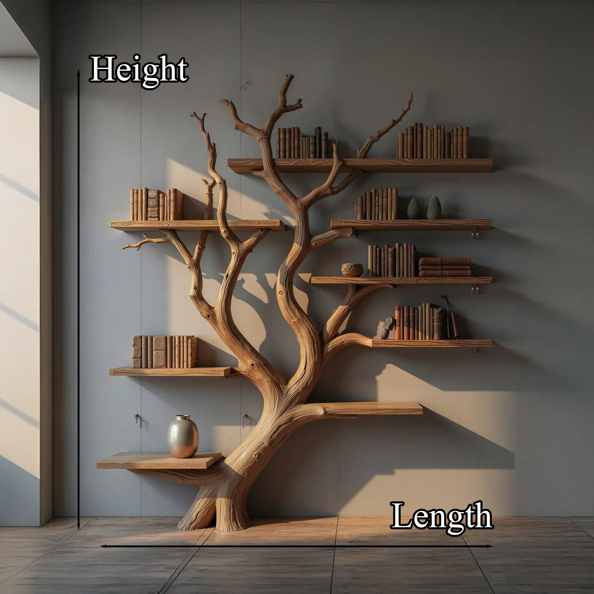 Our tree-shaped bookshelves are carefully handcrafted, with each branch showcasing its natural beauty and uniqueness. Since real tree branches are used, every piece is one-of-a-kind, ensuring no two bookshelves are ever the same.