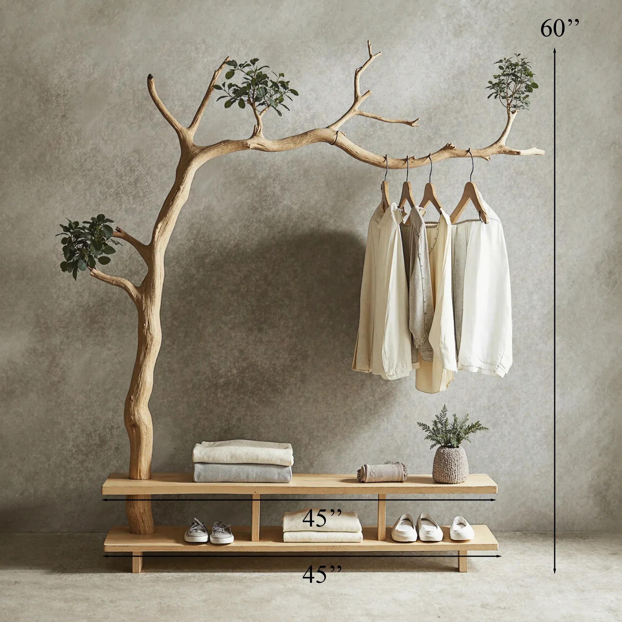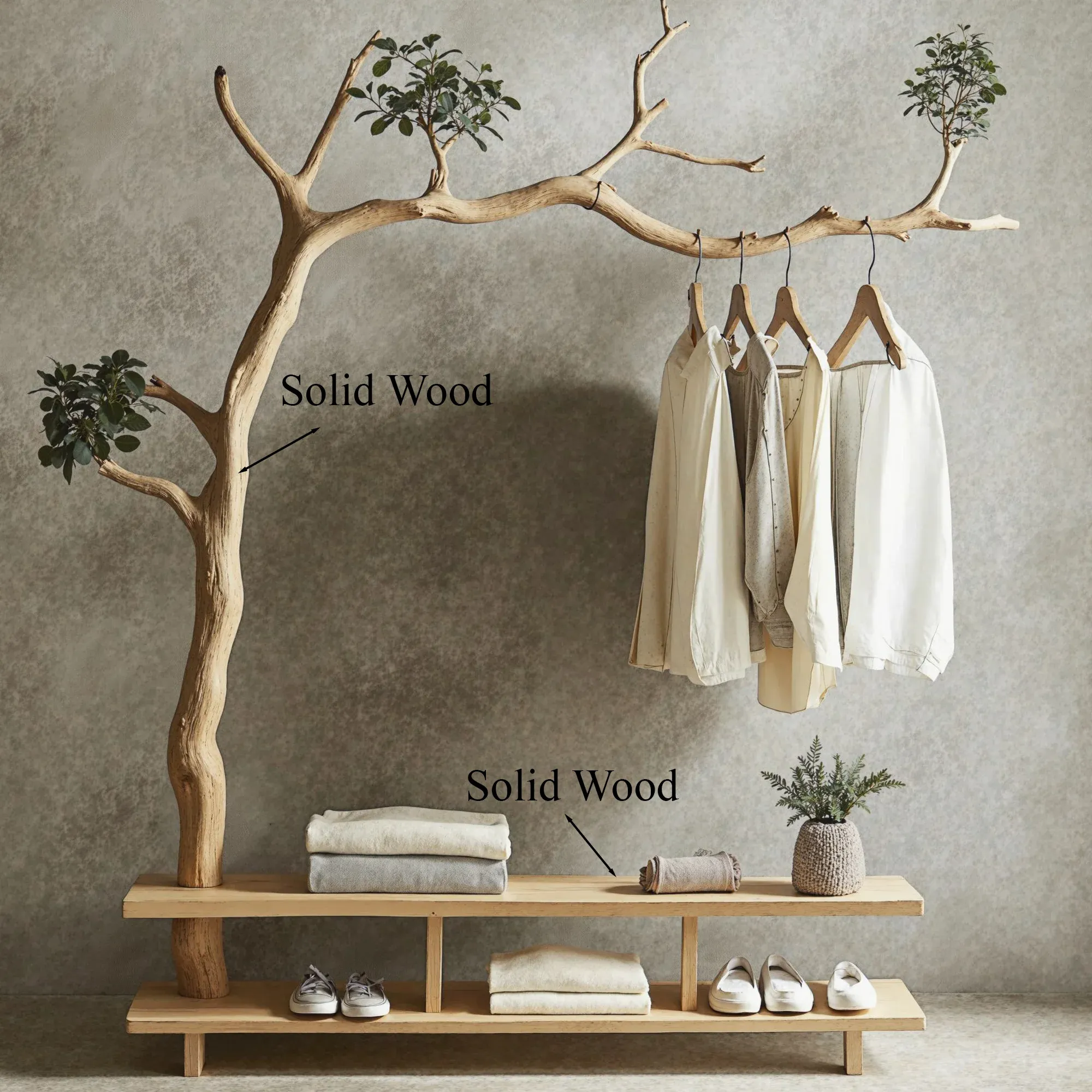 - Clothes Rack: The tree-like branches are cleverly designed as hanging bars, perfect for organizing coats, dresses, shirts, and more, ensuring your space stays neat.