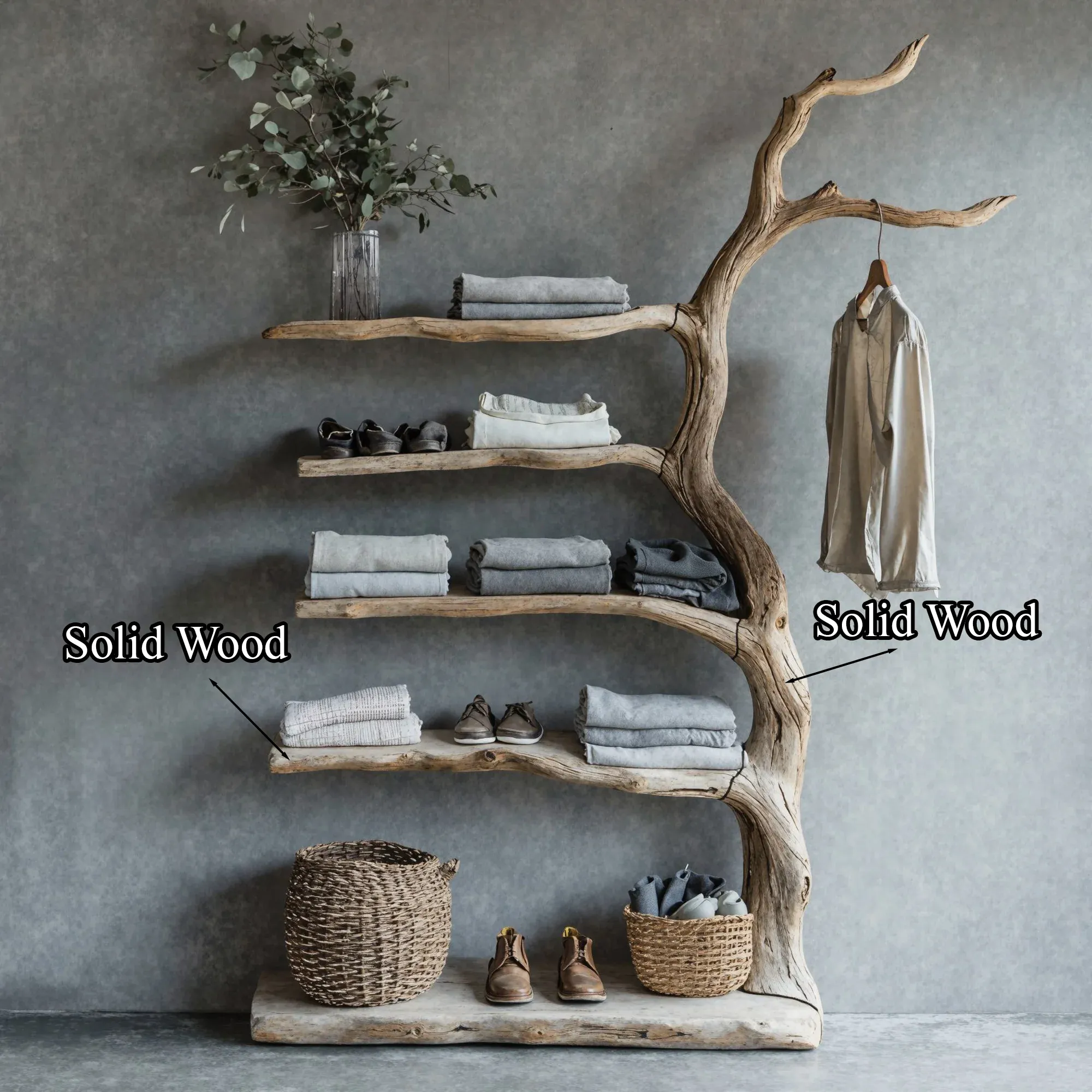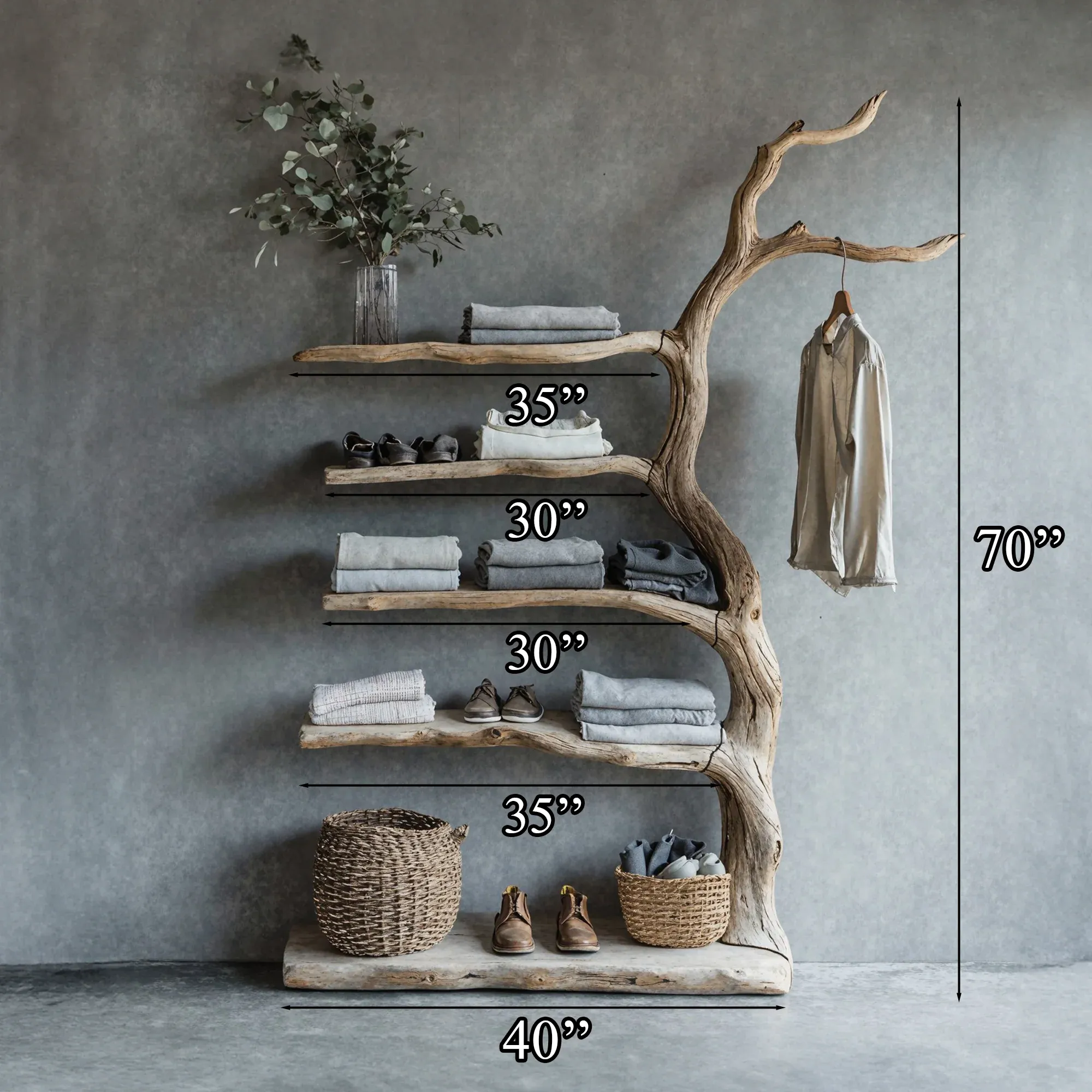 Driftwood Tree Branch Coat Rack With Shelf Shoe Storage SINLTB087