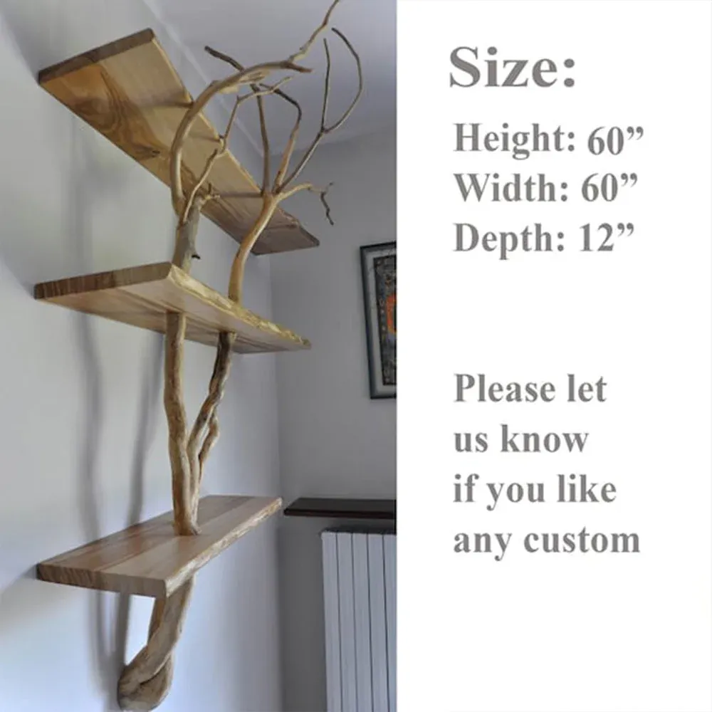 Tree branch wall floating shelves are not just an ordinary storage solution but also a unique work of art. With their floating design, they create a strong impression and add a focal point to any room. You can easily customize the placement and number of shelves to create a space that is personal and reflects your own style.