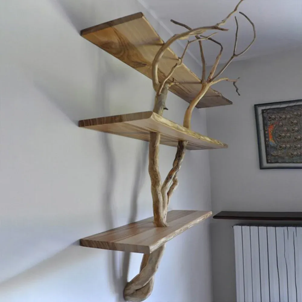 Tree branch wall floating shelves not only bring beauty but also enhance the utility of your space. You can creatively arrange books, decorations, personal items or even plants, taking advantage of every space effectively.