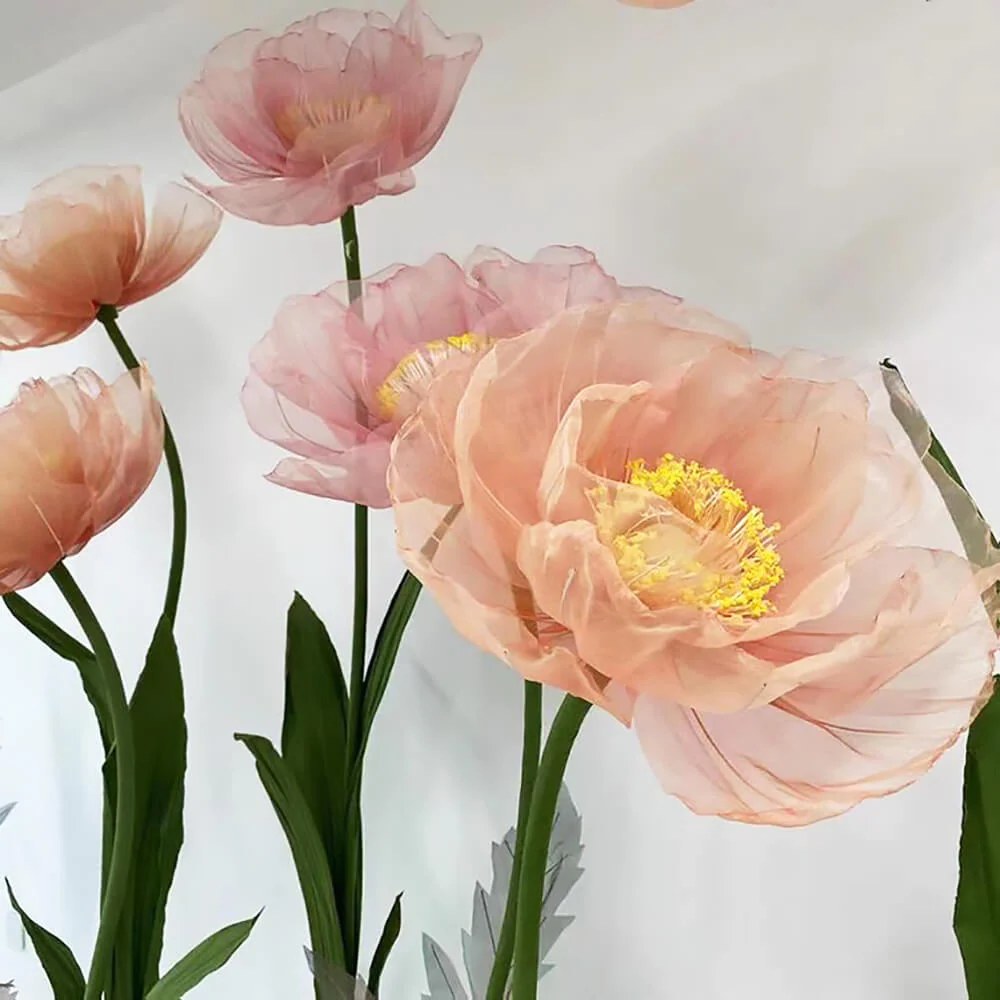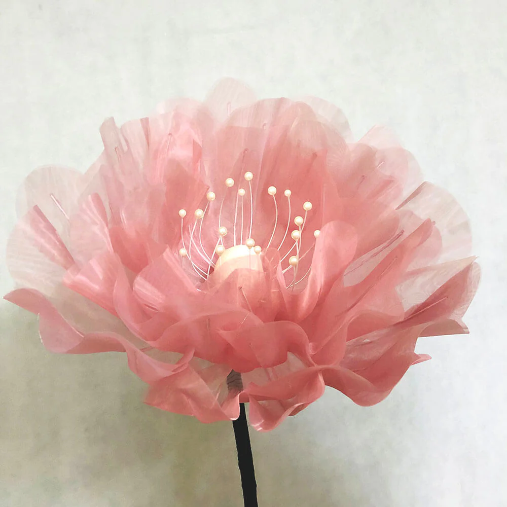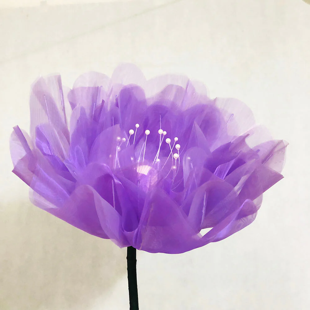 The lightweight and flexible stems allow for various compositions. Made of organza fabric, these flowers are perfect for decoration at events such as weddings, showers, and parties. They add a touch of elegance and chic with their unique texture. Each flower is a handmade work of art, ensuring quality and care.