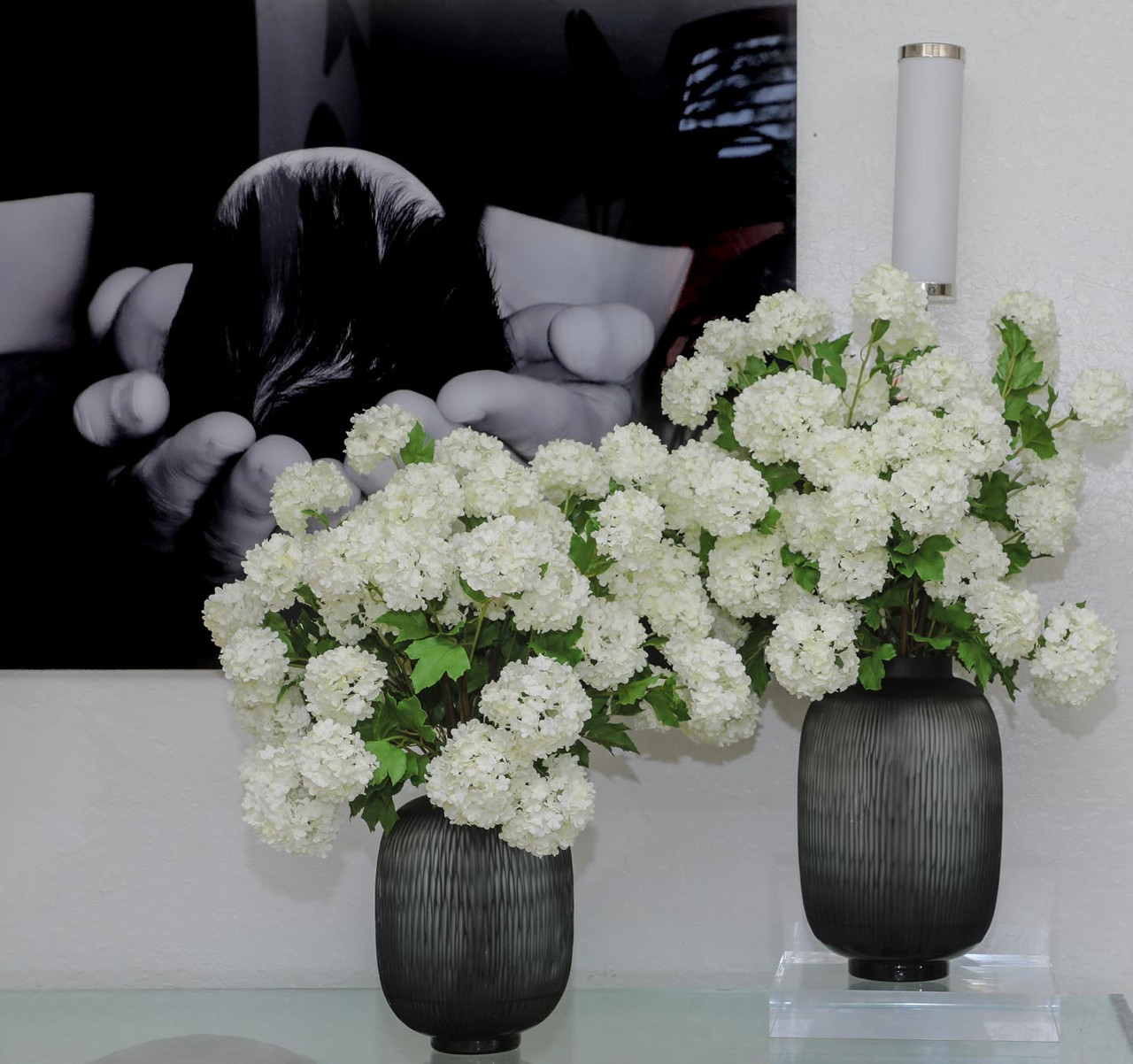 There’s no watering required to maintain the stunning good looks of this white snowball watergarden. With dense flowers and deep green leaves, it makes for a sumptuous display; it’s set in a our pelican vase with acrylic “water” that adds to its lifelike beauty. The show-stopping finish of the Maximal Vase comes from mouth-blown glass with a soft grinded design, which lets through light and allows the simple silhouette of this piece to shine.