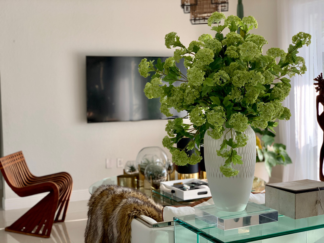 Handcrafted for year-round elegance, there’s no watering required to maintain the stunning good looks of this greensnowball watergarden. With dense flowers and deep green leaves, it makes for a sumptuous display; it’s set in a our pelican vase with acrylic “water” that adds to its lifelike beauty. The show-stopping finish of the Pelican Vase comes from mouth-blown glass with a soft grinded design, which lets through light and allows the simple silhouette of this piece to shine.