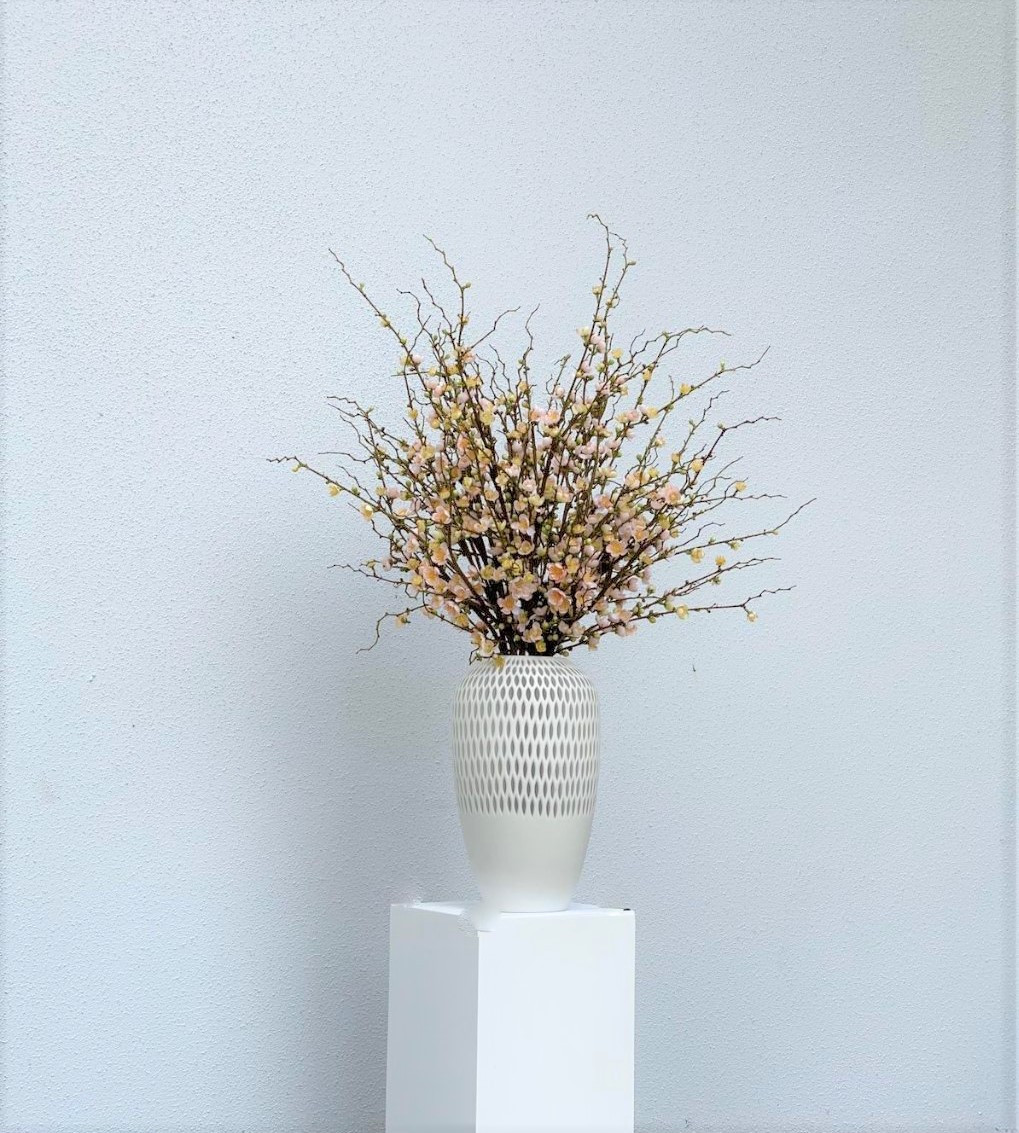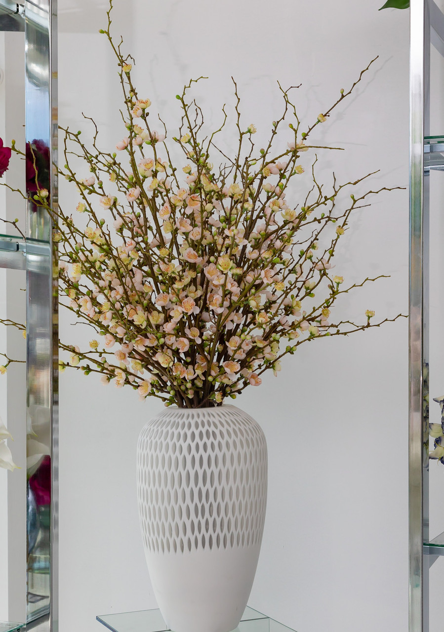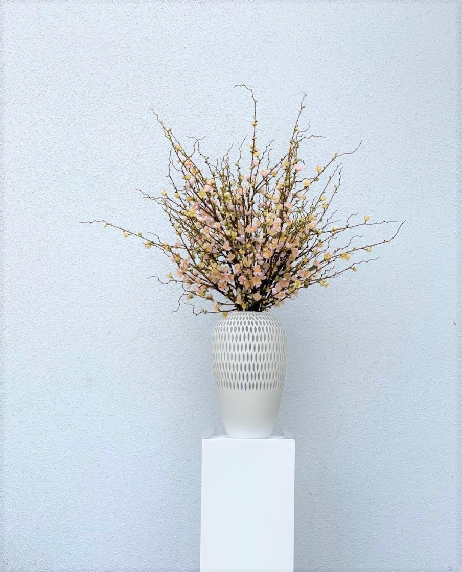 Highly prized in many parts of the world, the cherry blossom infuses a room with the fresh feeling of spring. This bouquet could not be more simple—or exquisite. Uncommonly lifelike, it captures the beauty of nascent pink blooms and emerging leaves on cherry tree branches. Set in our pelican vase, the arrangement makes a stunning tabletop accent that looks fresh year-round.