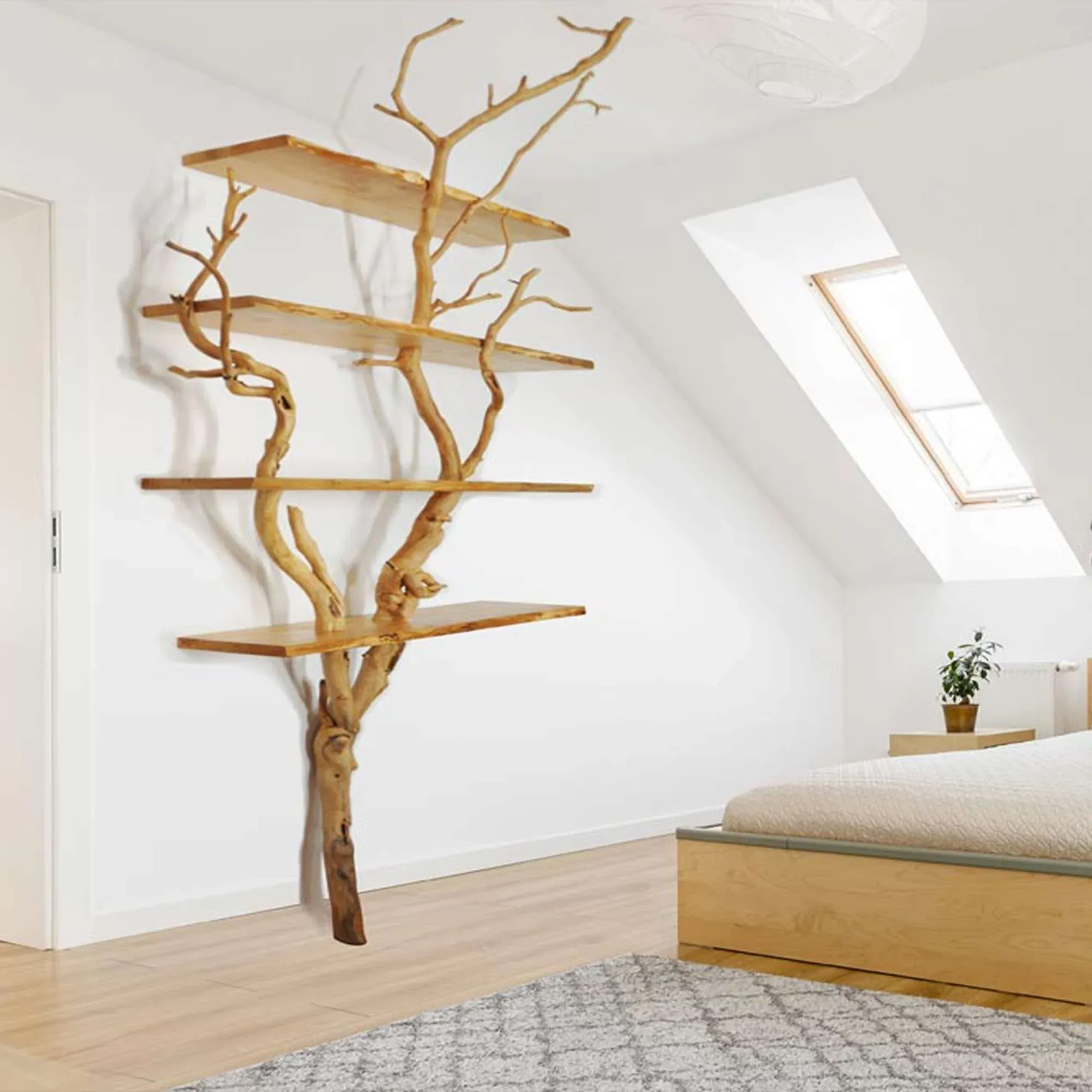 The tree branch bookshelf is not just an ordinary storage solution but also a unique work of art. With their floating design, they create a strong impression and add a focal point to any room. You can easily customize the placement and number of shelves to create a space that is personal and reflects your own style.