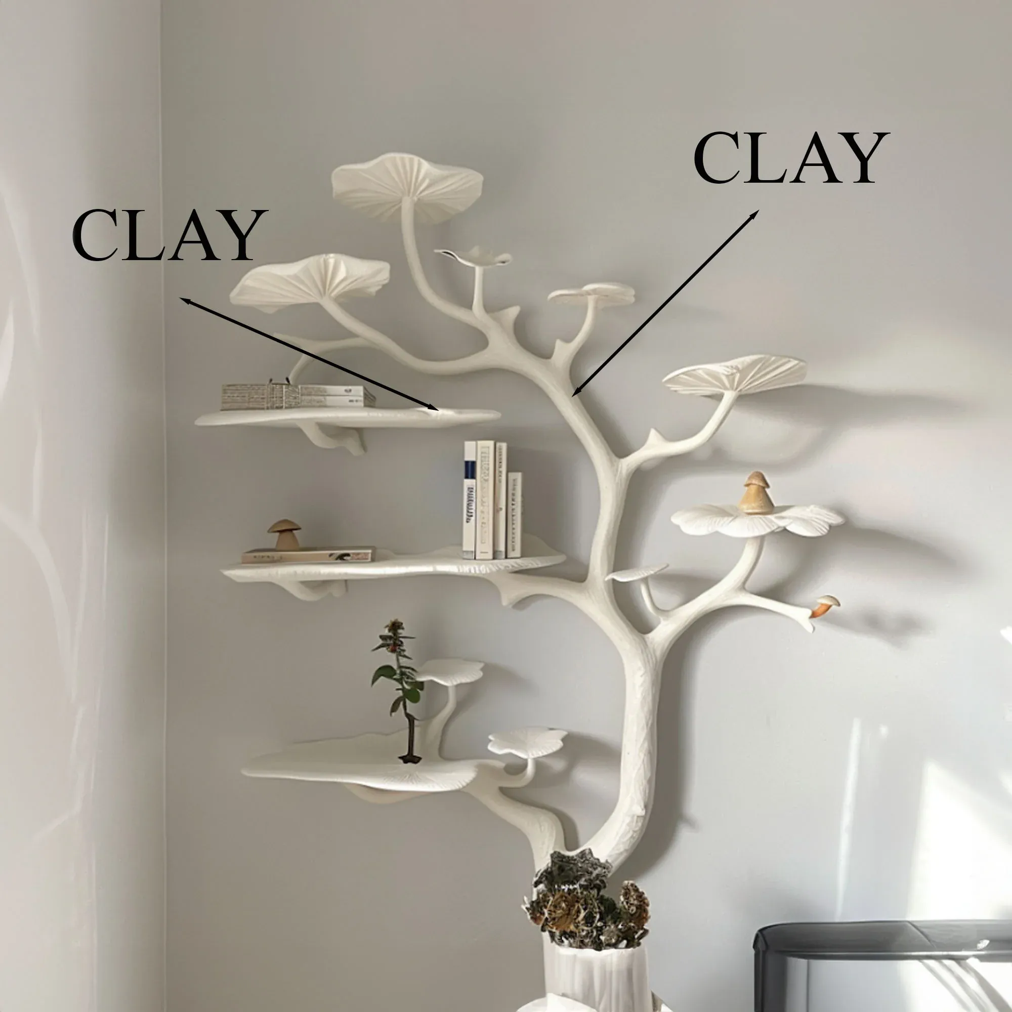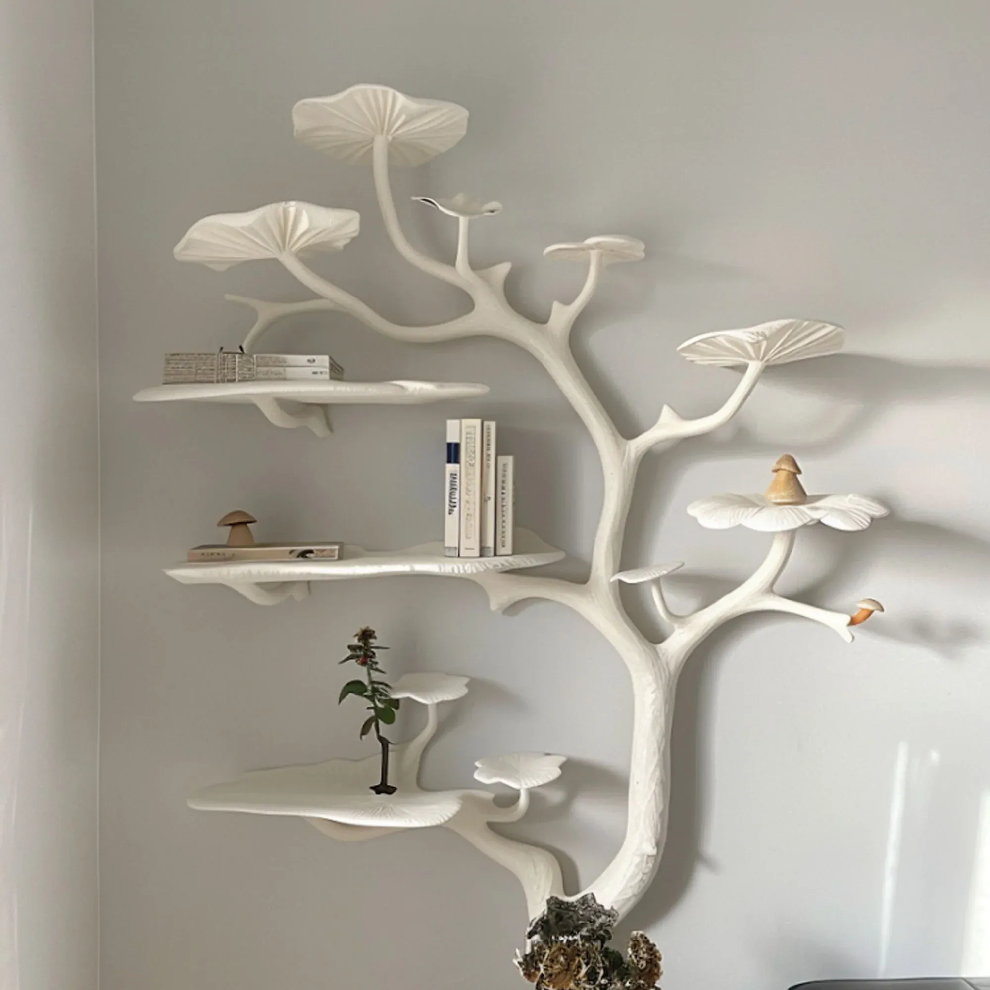 Mushroom Tree Branch Floating Shelf Clay Rustic shelf mid century bookcase home decor