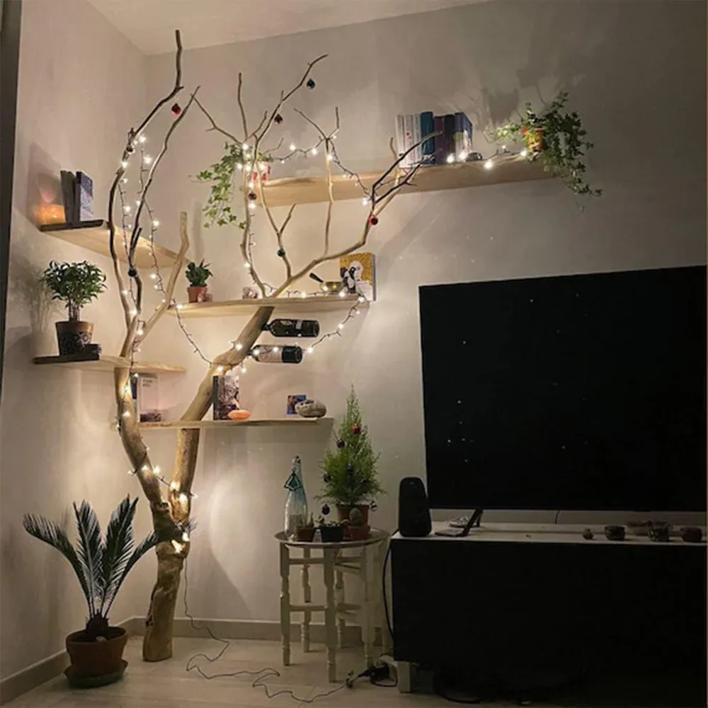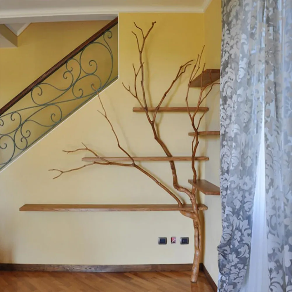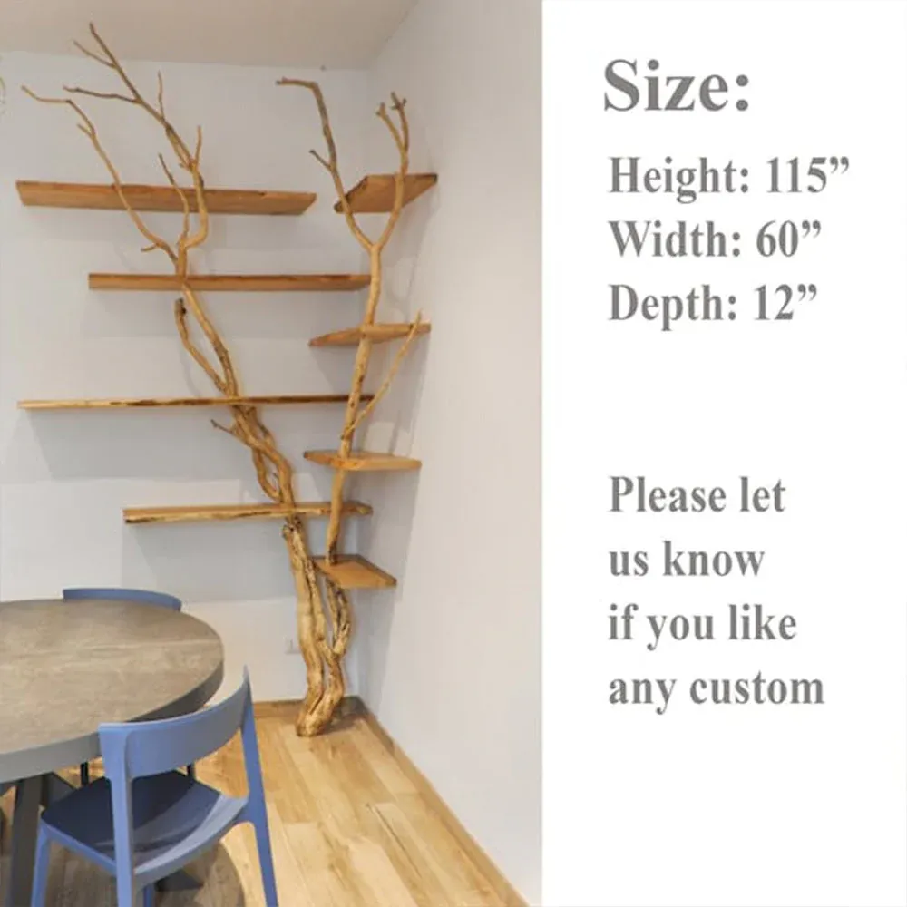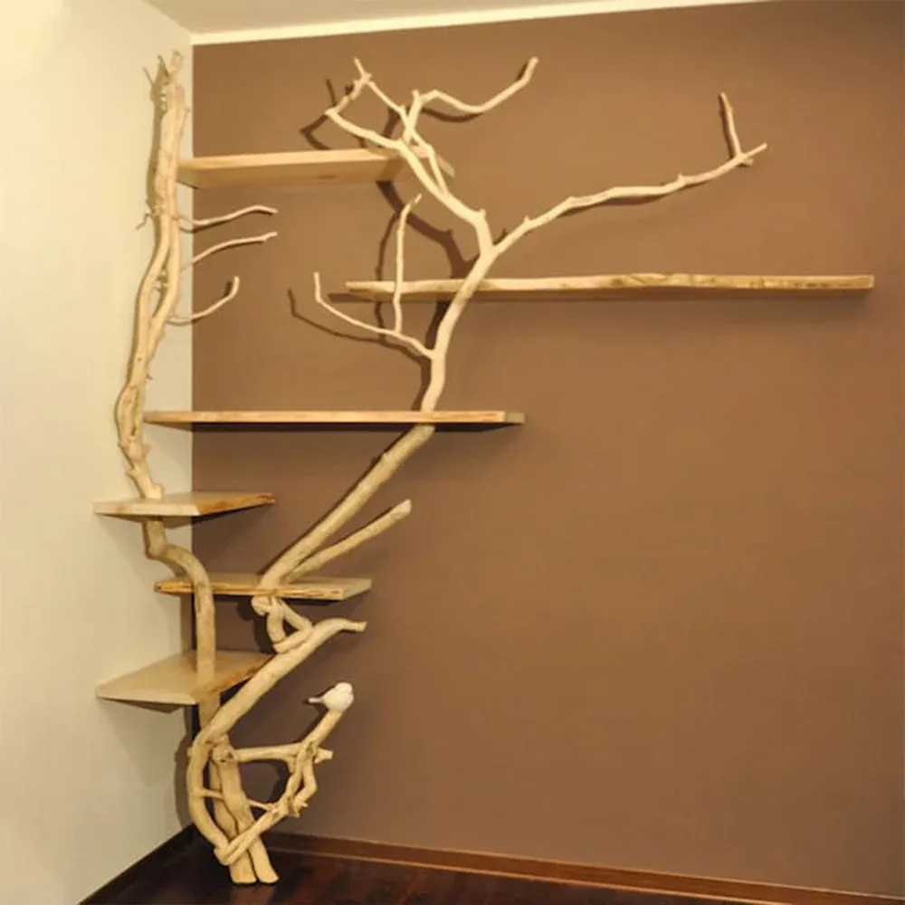 Natural Tree Branch Corner Shelf Wood Bookcase Wall Custom Cat Tree SINLTB020