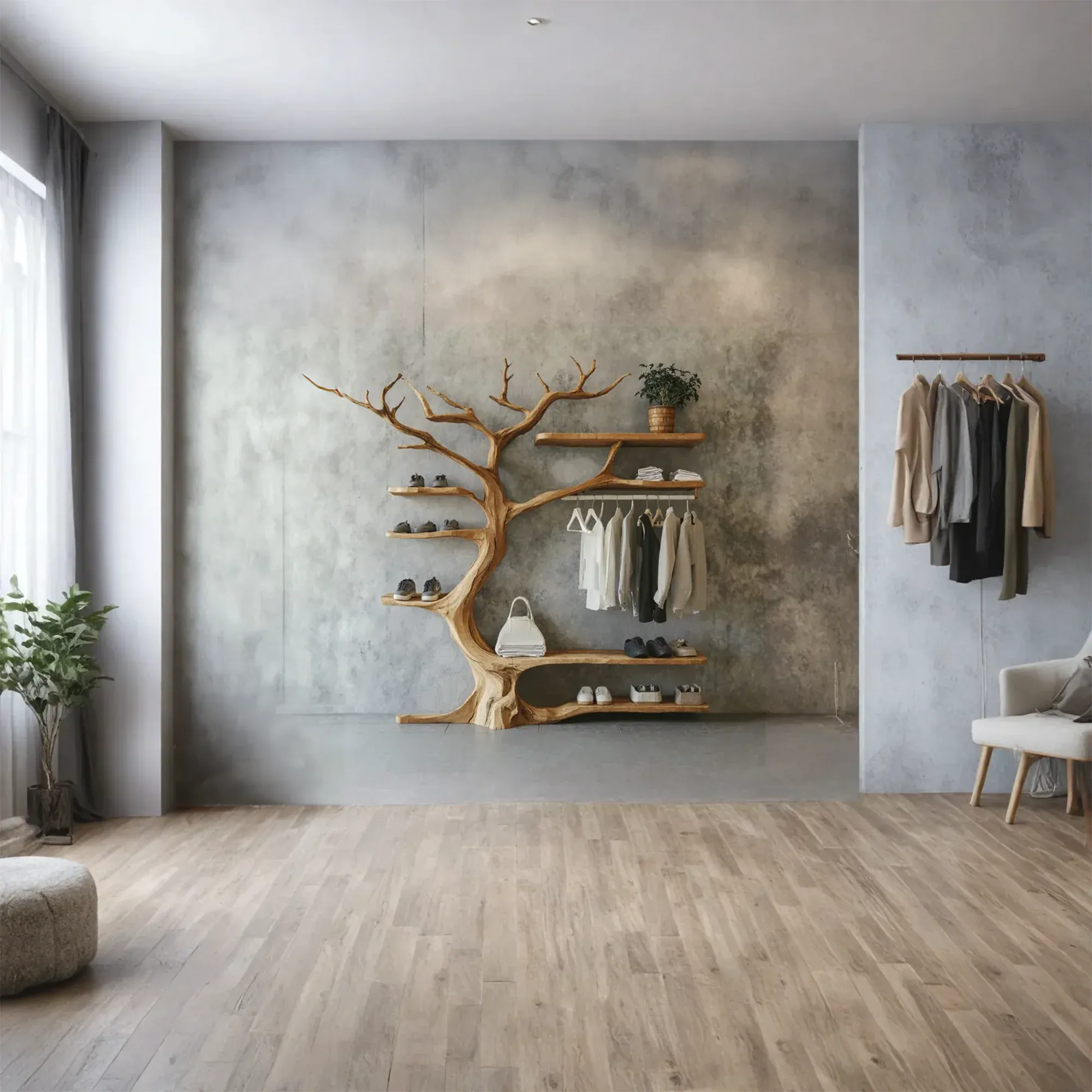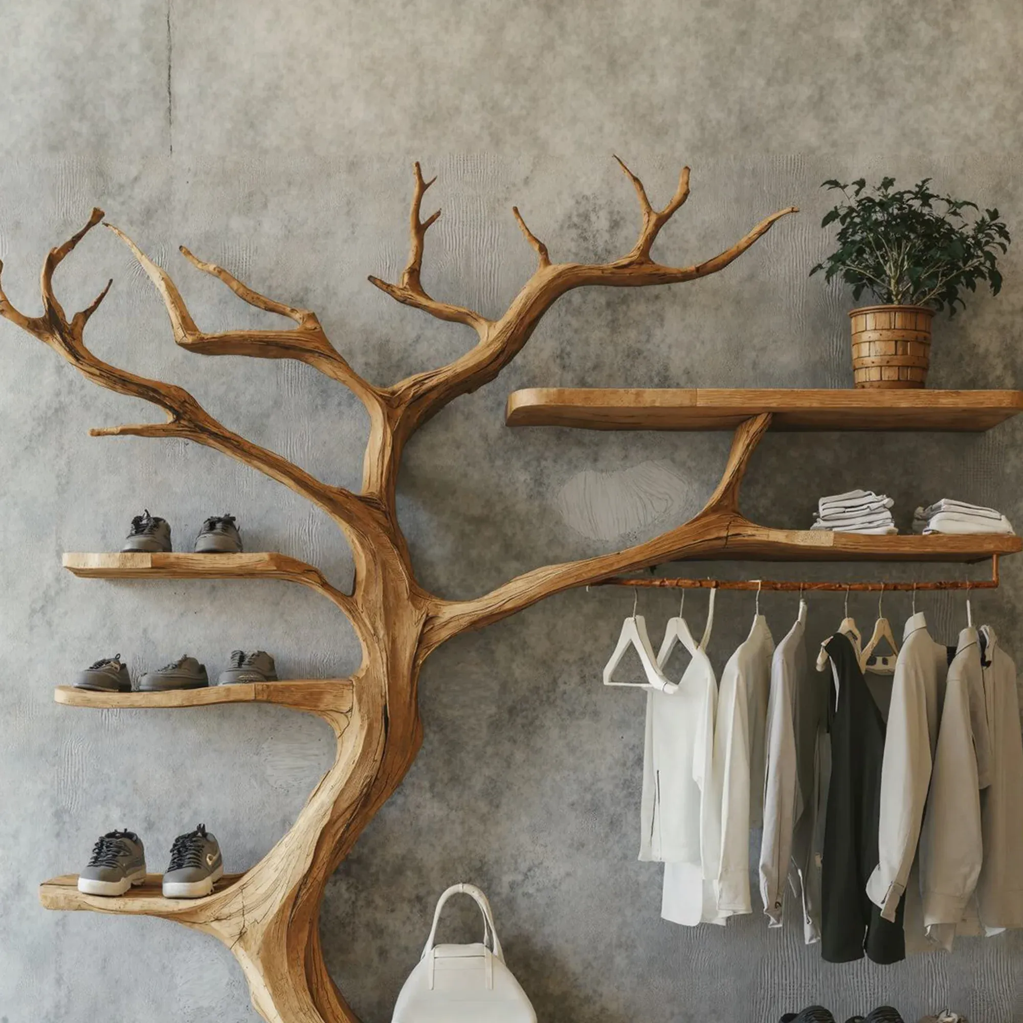 Bring a fresh and creative touch to your living space with a one-of-a-kind tree-shaped clothes and shoe rack. This product mimics the natural form of a tree, featuring soft, curving branches that add a stunning, unique element to any room.