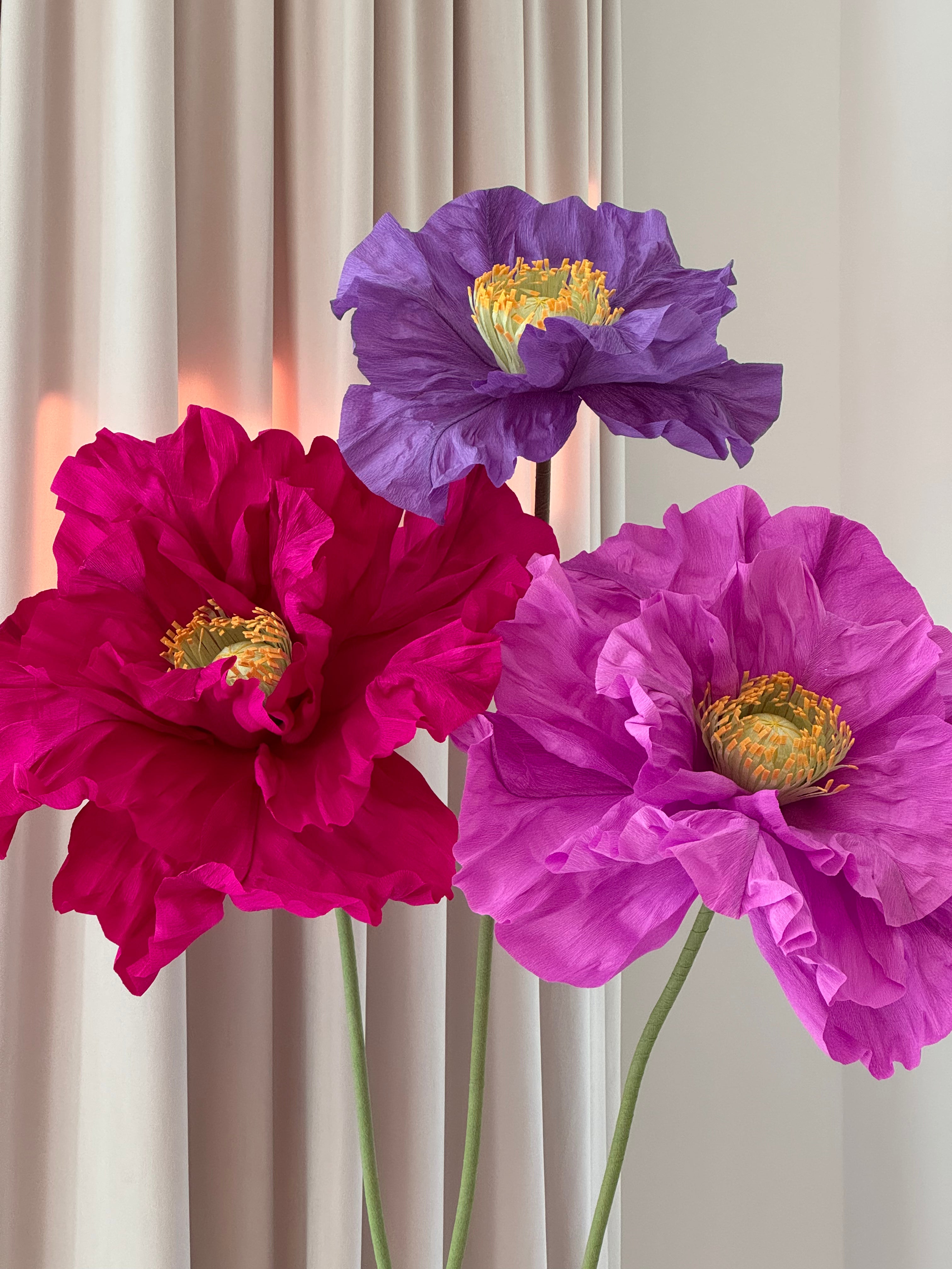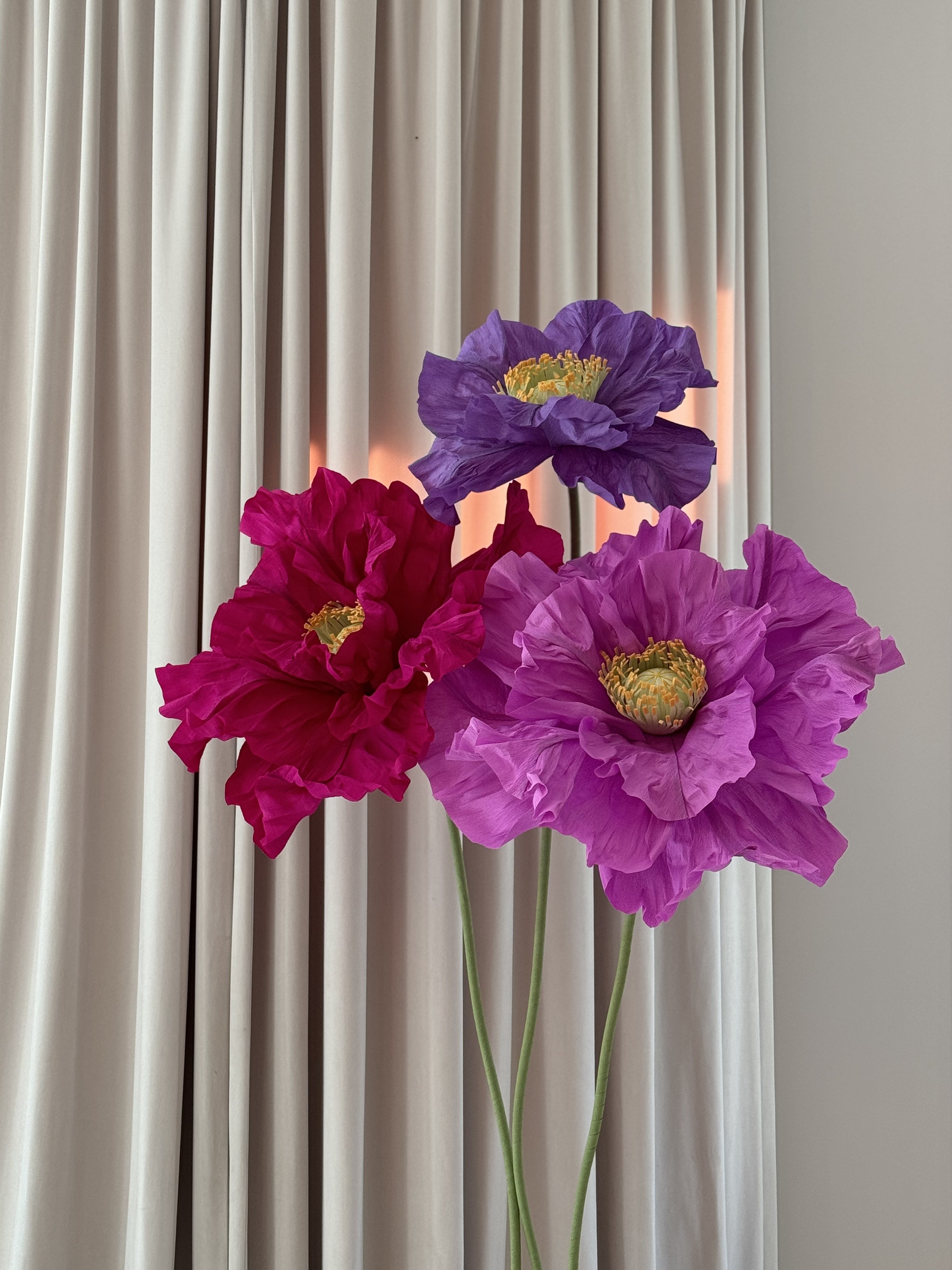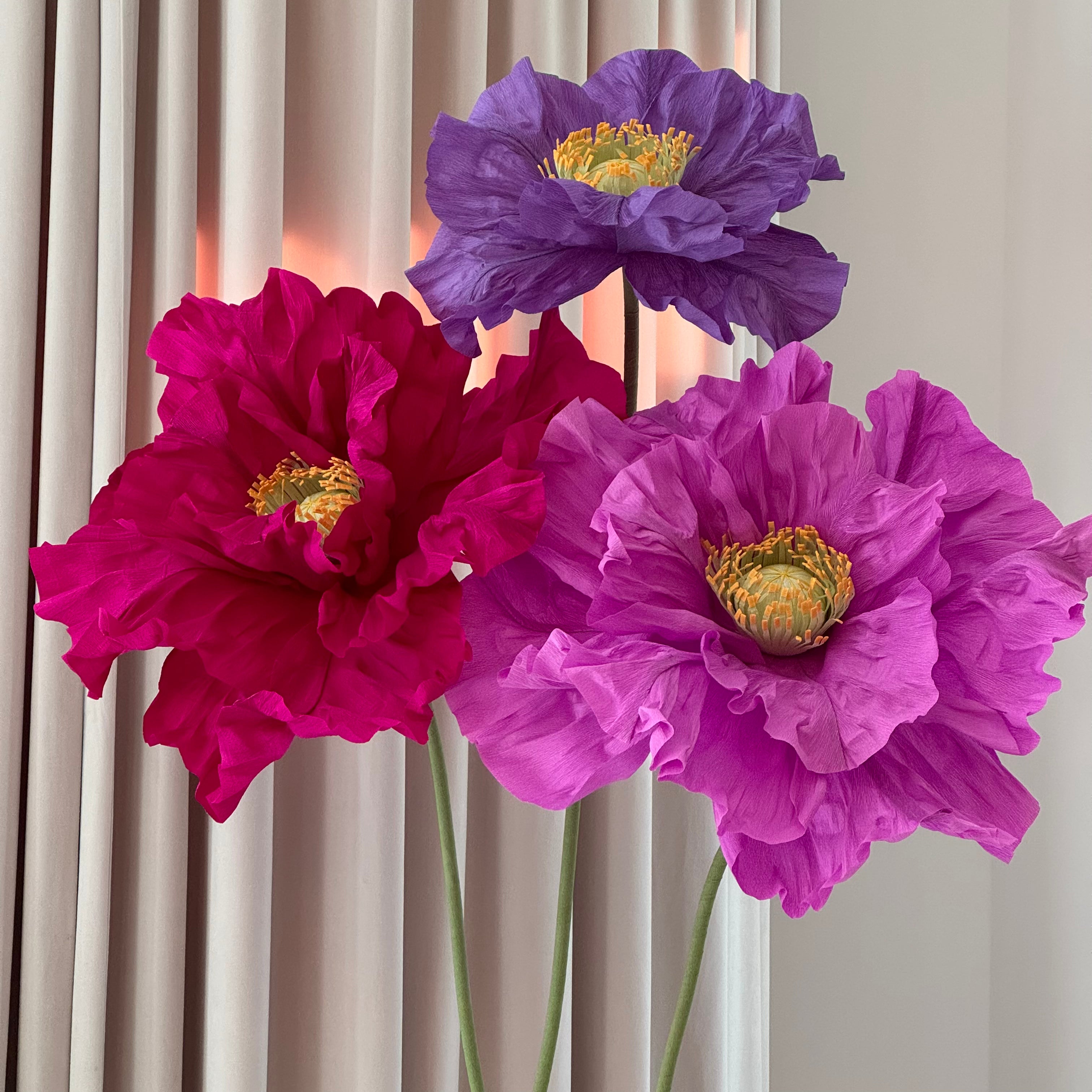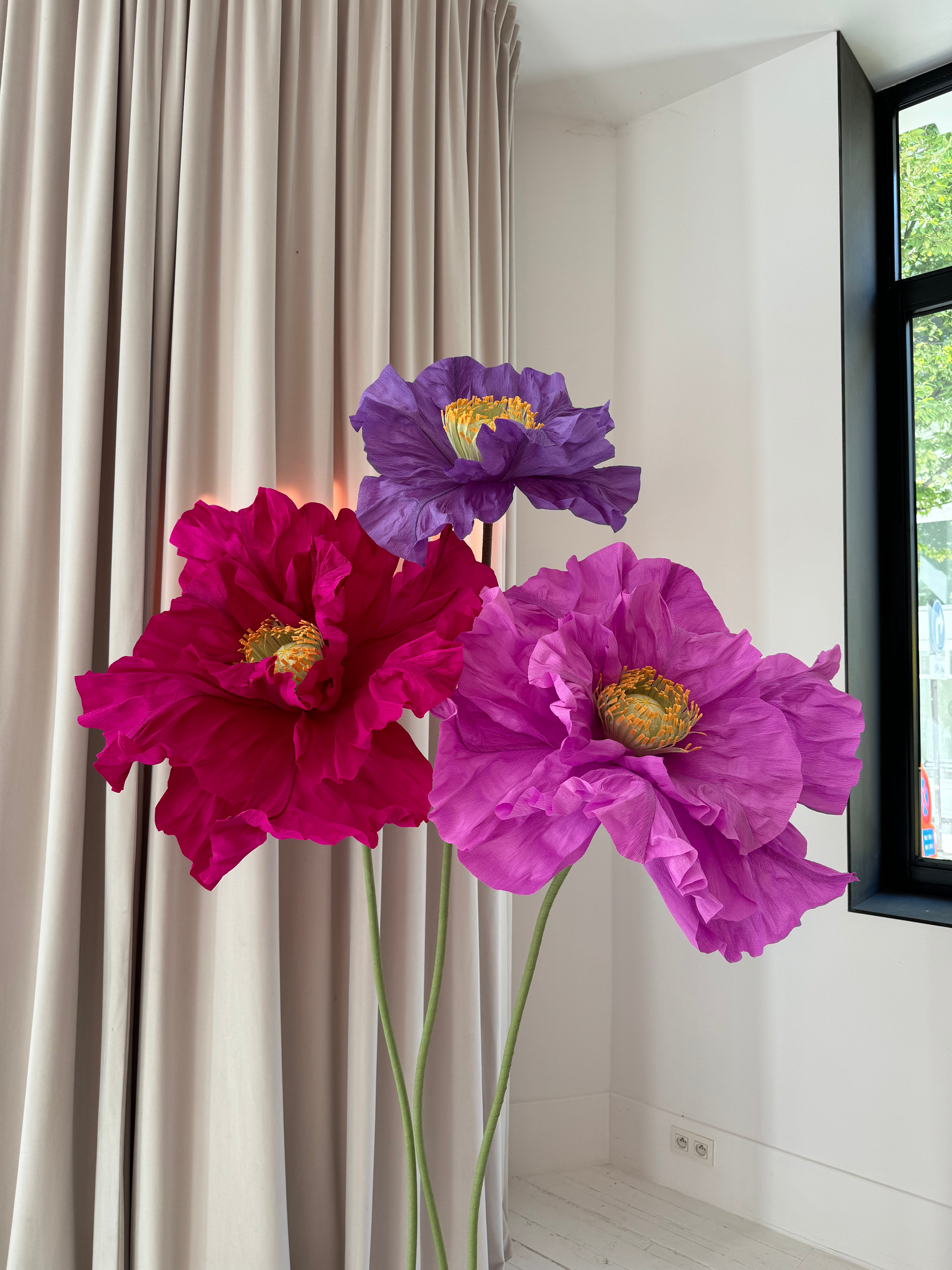 Discover the beauty of our standing oversized paper flowers, perfect for adding a touch of elegance to your window displays and event decor. These free-standing paper flowers are available now to transform your space with charm and creativity.