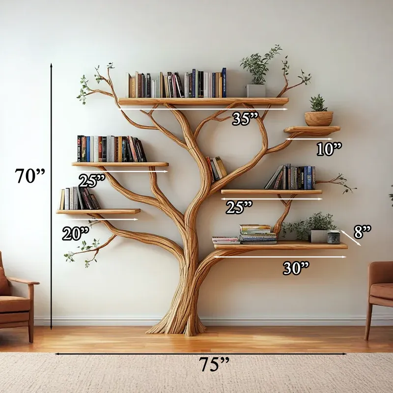 Tree bookshelf is not just an ordinary storage solution but also a unique work of art. With their floating design, they create a strong impression and add a focal point to any room. You can easily customize the placement and number of shelves to create a space that is personal and reflects your own style.