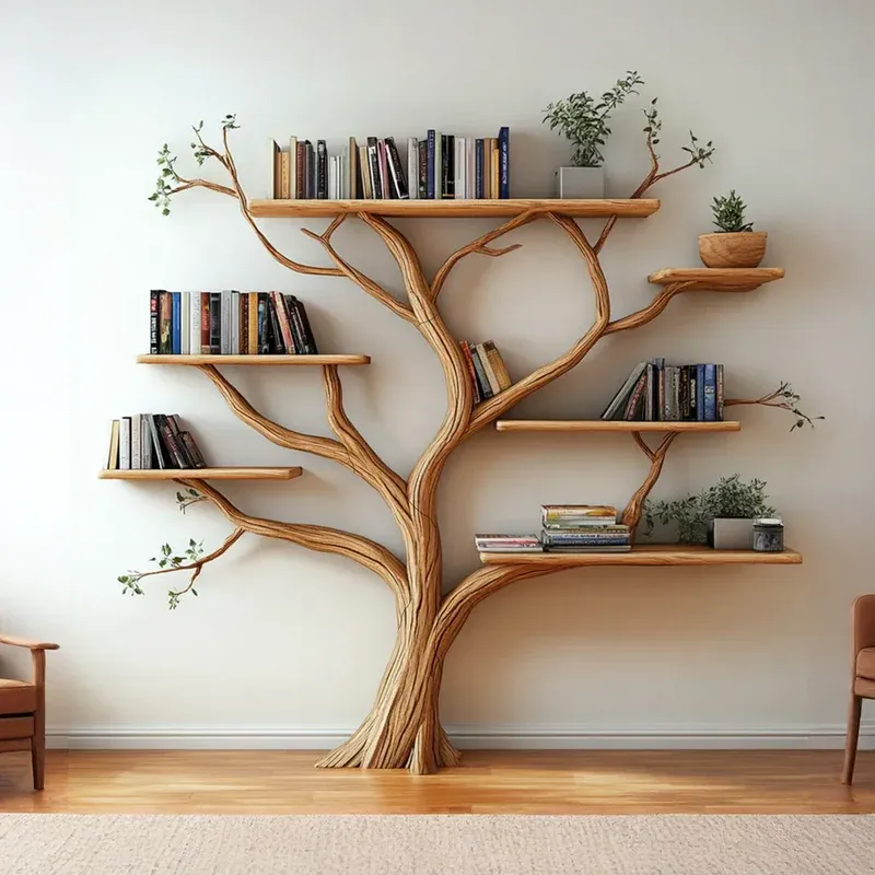 Our tree-shaped bookshelves are carefully handcrafted, with each branch showcasing its natural beauty and uniqueness. Since real tree branches are used, every piece is one-of-a-kind, ensuring no two bookshelves are ever the same.