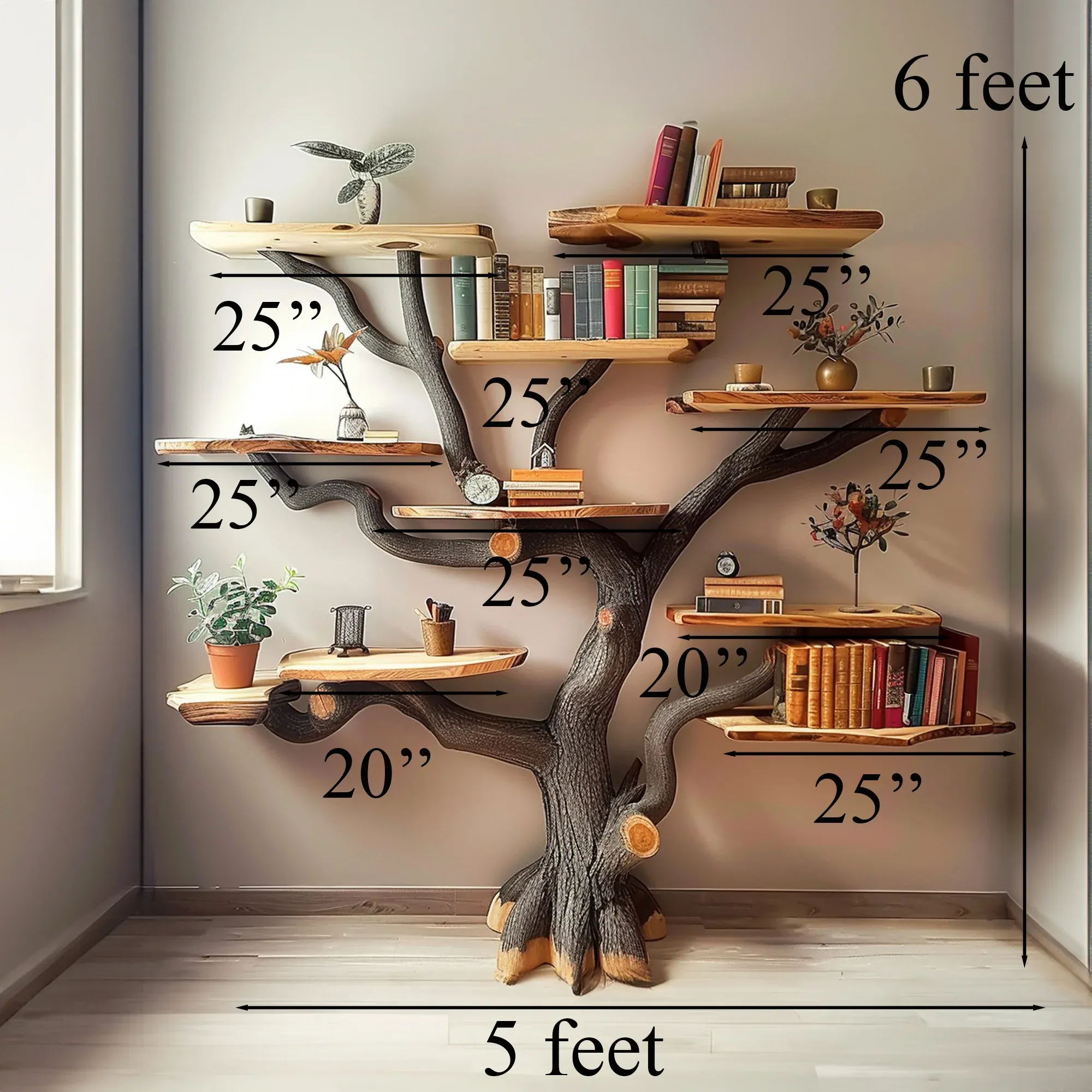 The tree book shelf is handcrafted from natural branches, each uniquely shaped for distinct beauty. Due to the natural variations, each piece may differ from the photo. With 15 years of experience, Spry Interior ensures every product is perfected before delivery.