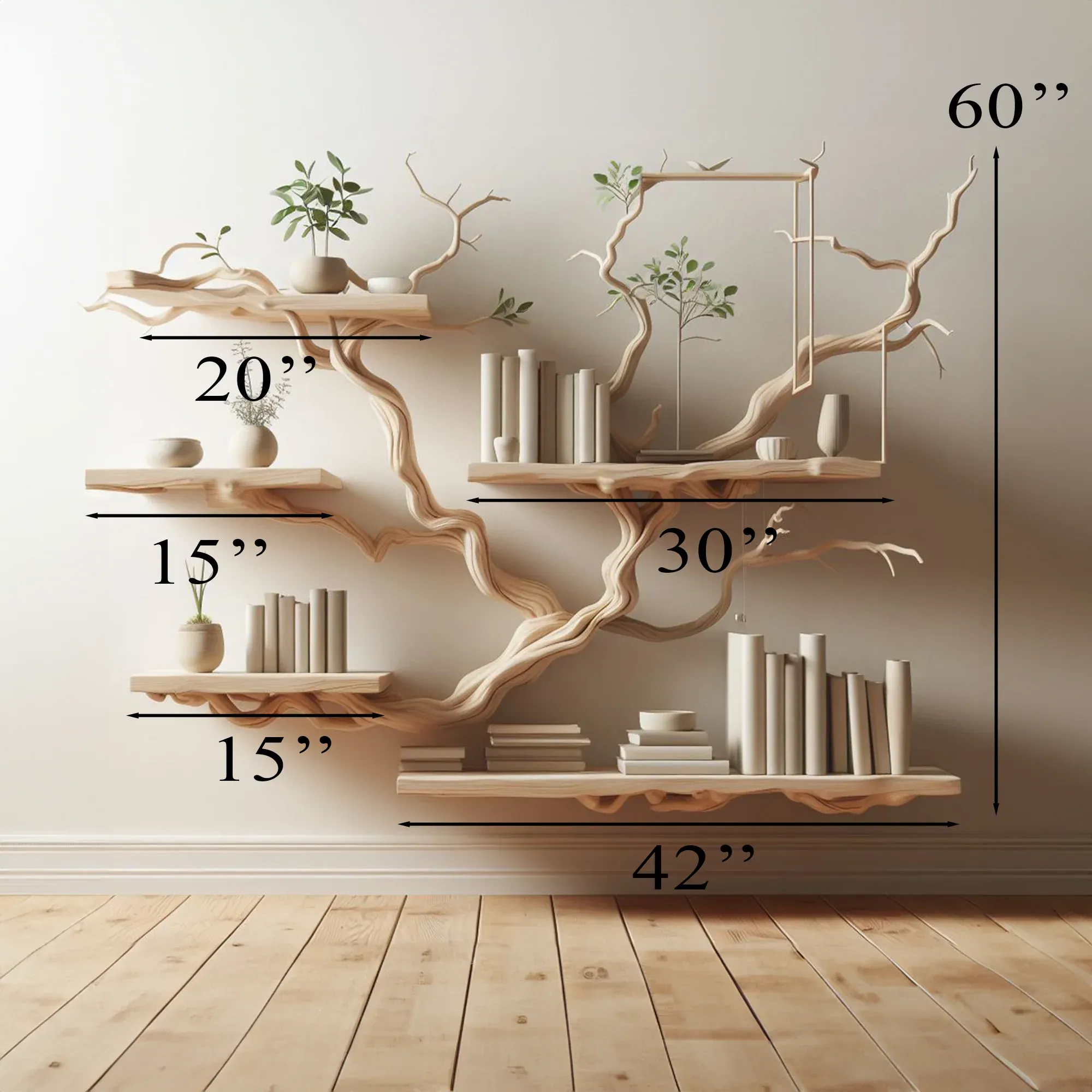 Tree branch floating shelf not only bring beauty but also enhance the utility of your space. You can creatively arrange books, decorations, personal items or even plants, taking advantage of every space effectively.