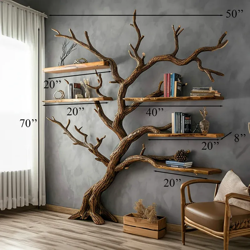 The tree branch bookshelf is not just an ordinary storage solution but also a unique work of art. With their floating design, they create a strong impression and add a focal point to any room. You can easily customize the placement and number of shelves to create a space that is personal and reflects your own style.