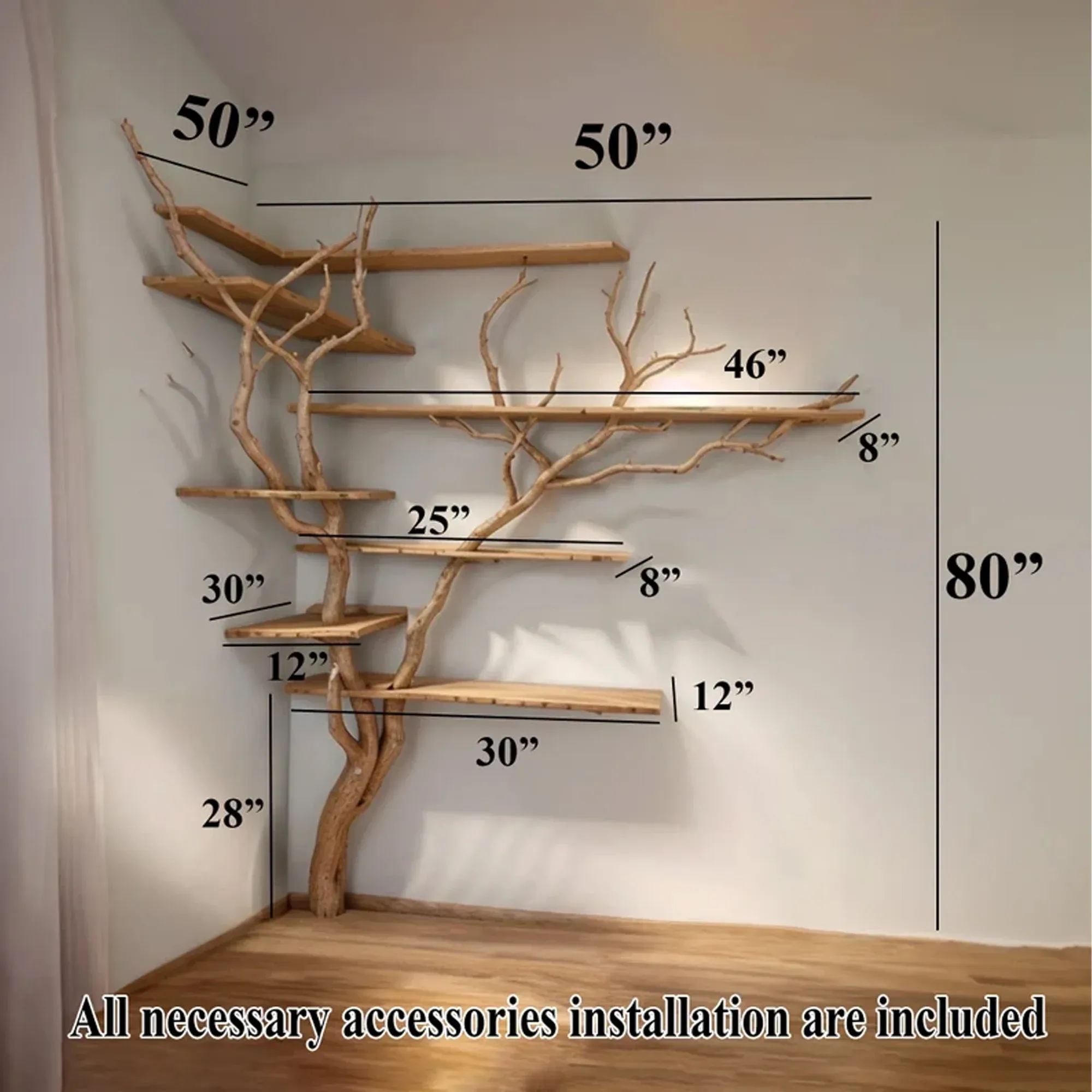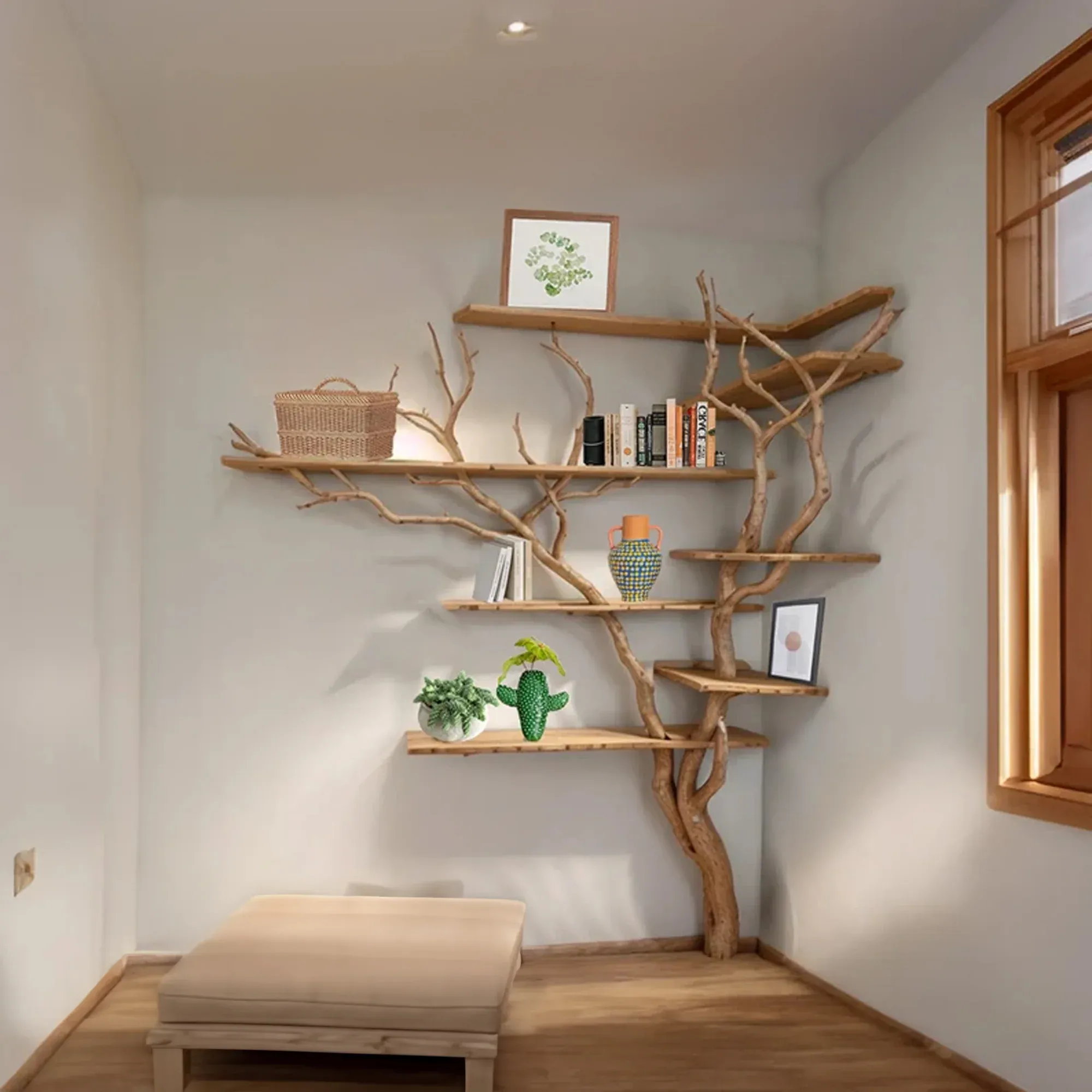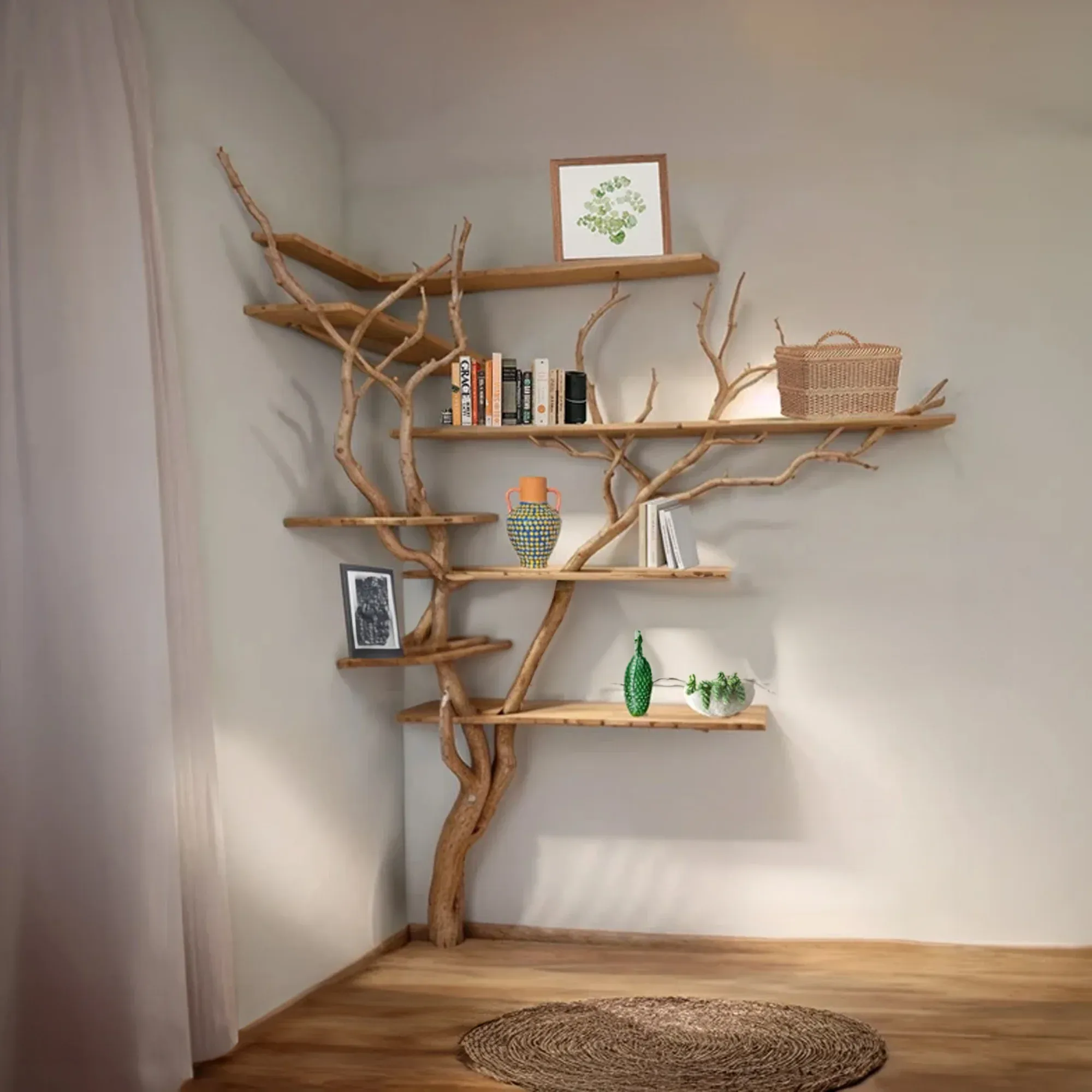 Corner tree branch shelf not only bring beauty but also enhance the utility of your space. You can creatively arrange books, decorations, personal items or even plants, taking advantage of every space effectively.