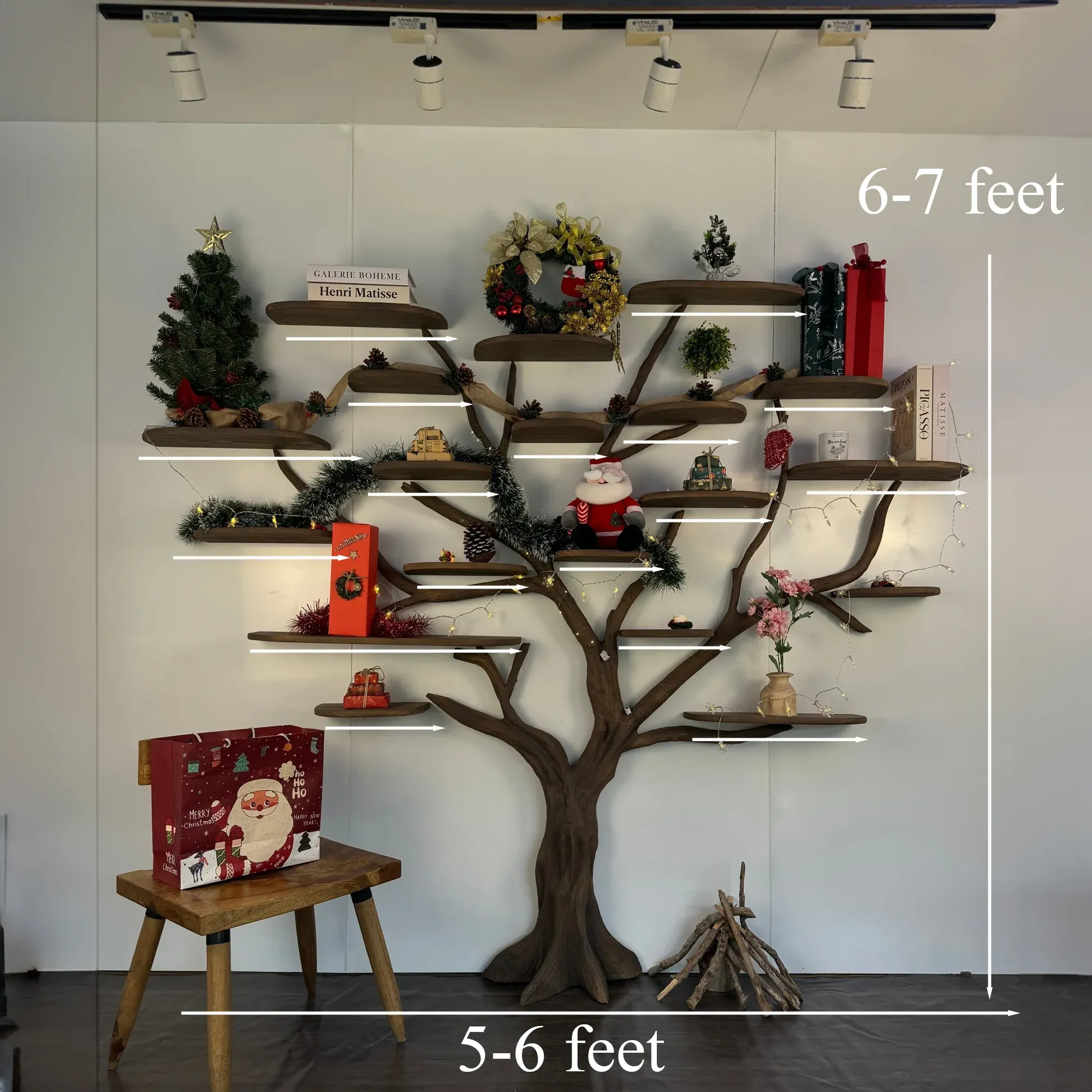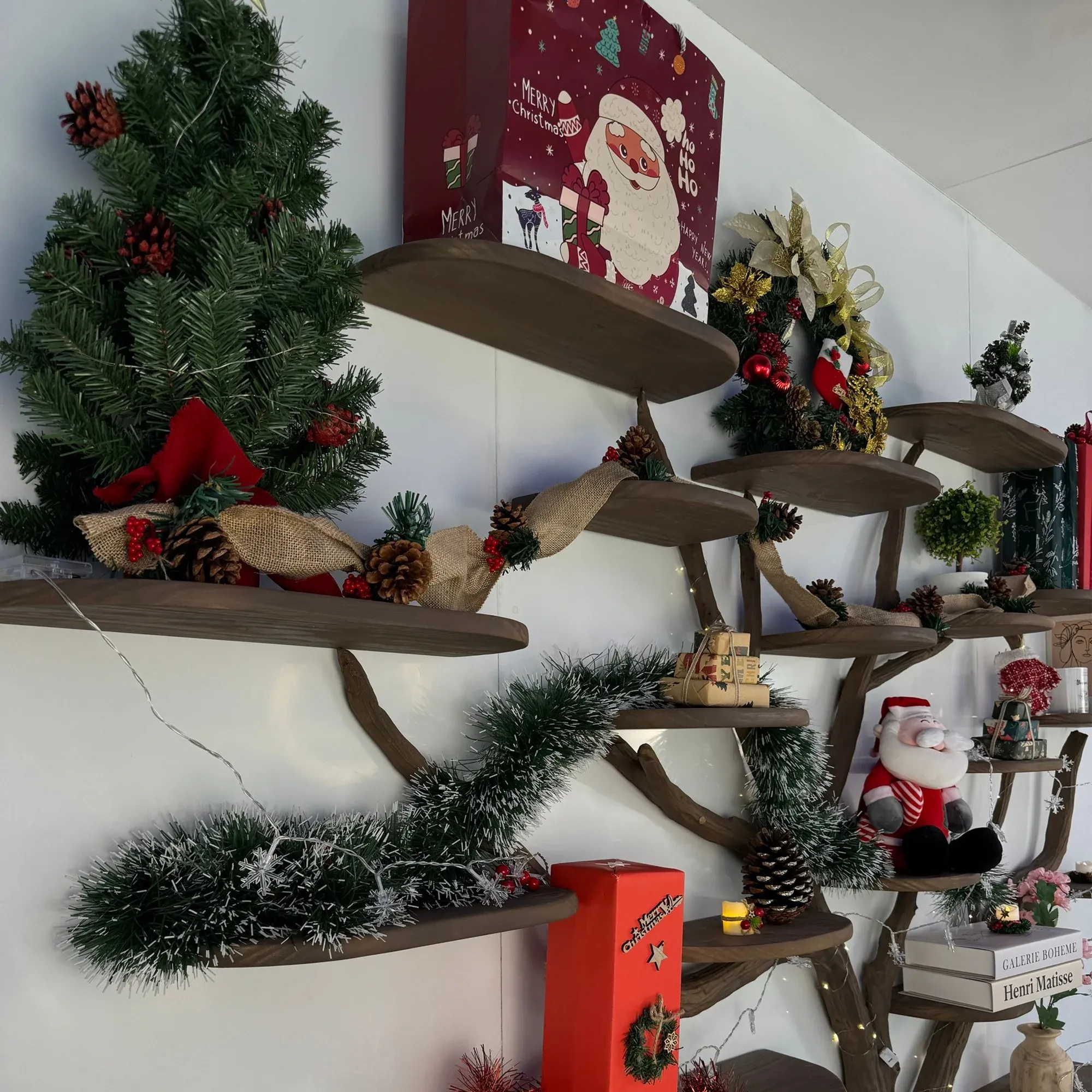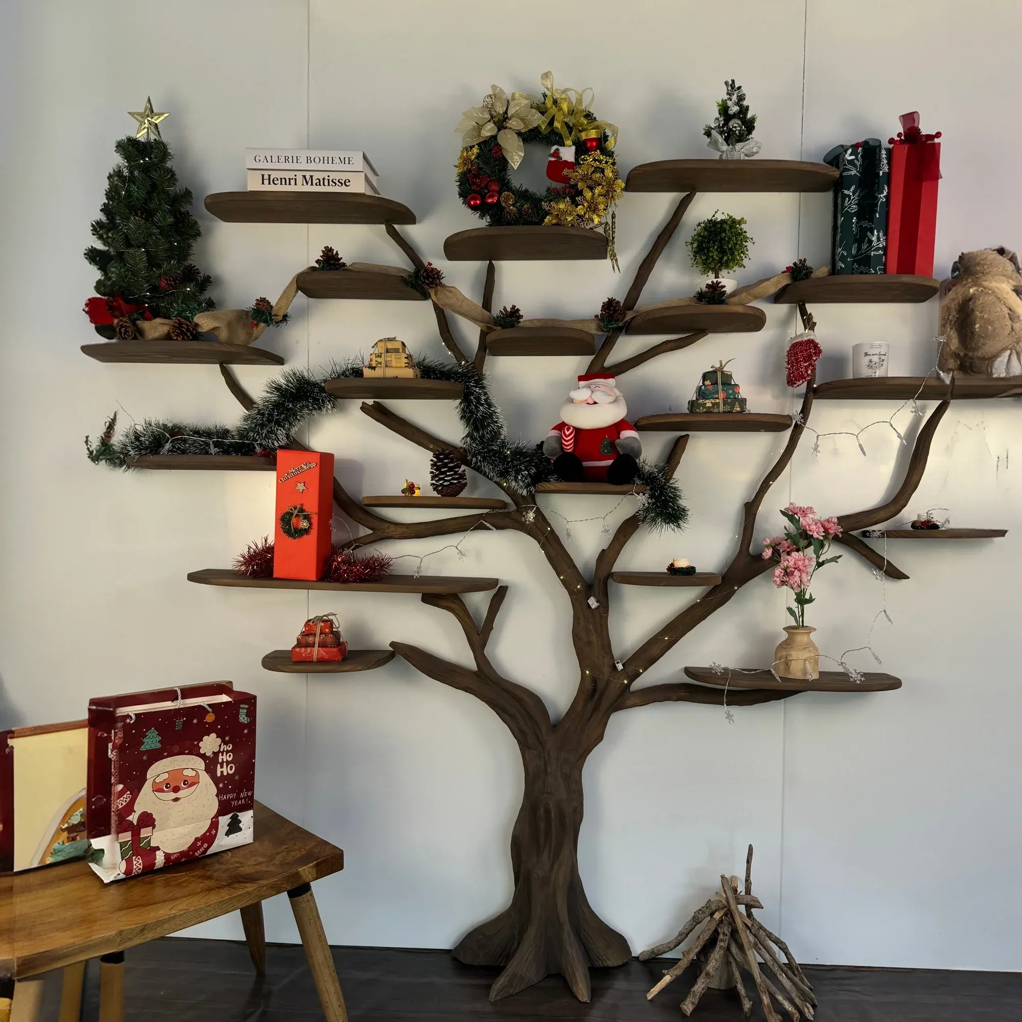 Tree branch bookshelf solid wood bookcase floating bookshelf wall mount handmade furniture christmas decorations