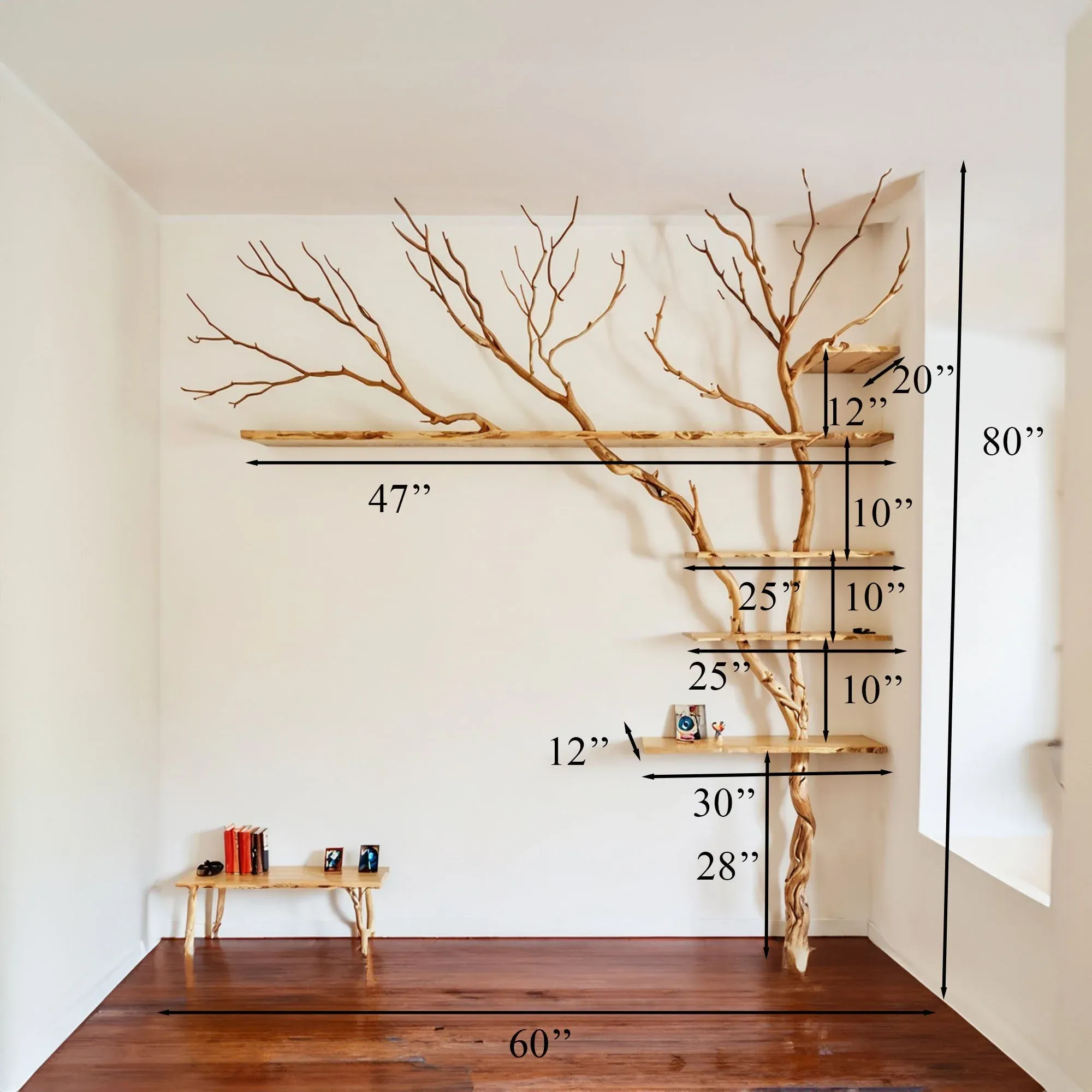 Tree floating shelf is not just an ordinary storage solution but also a unique work of art. With their floating design, they create a strong impression and add a focal point to any room. You can easily customize the placement and number of shelves to create a space that is personal and reflects your own style.