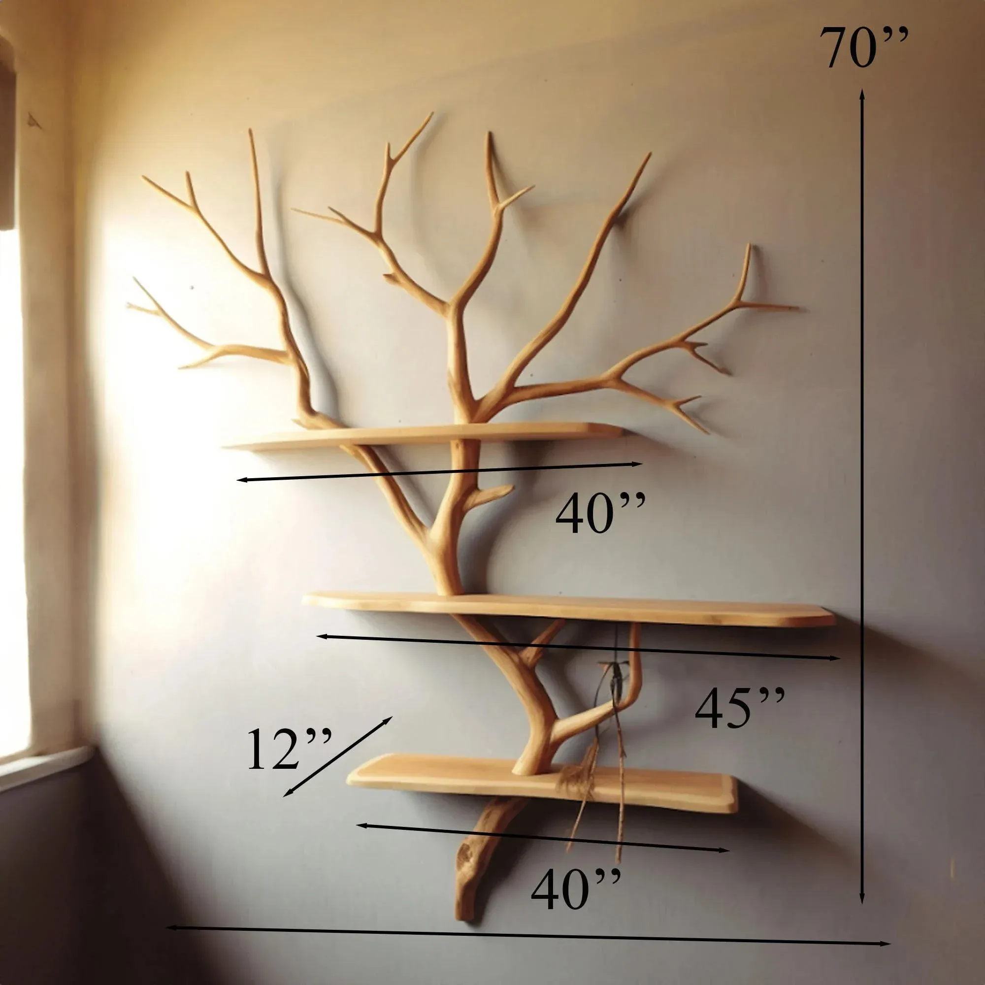 Tree branch floating corner shelf is not only a common interior product but also a symbol of creativity and sophistication in interior decoration. Let them make your space more beautiful and modern than ever!
