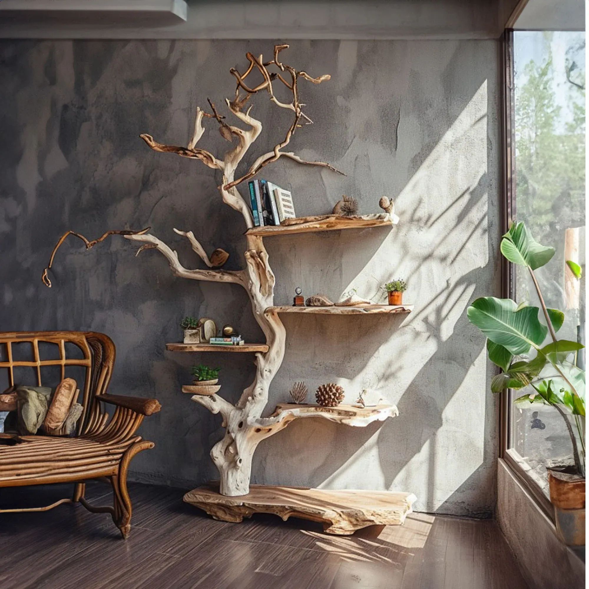 Tree branch standing corner shelf is not only a common interior product but also a symbol of creativity and sophistication in interior decoration. Let them make your space more beautiful and modern than ever!