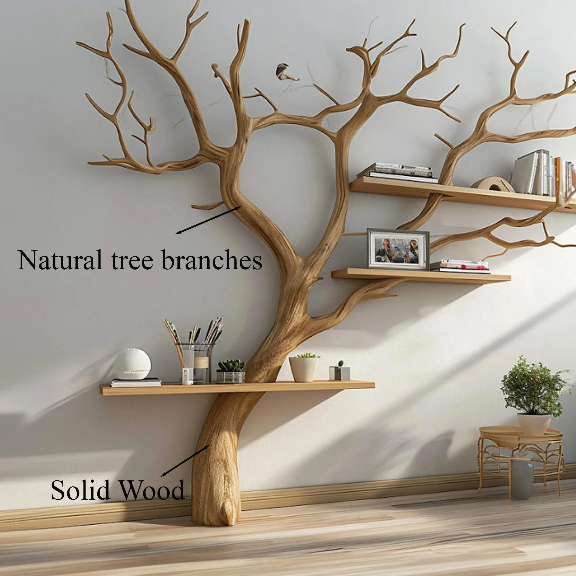Tree branch wall bookshelf not only bring beauty but also enhance the utility of your space. You can creatively arrange books, decorations, personal items or even plants, taking advantage of every space effectively.