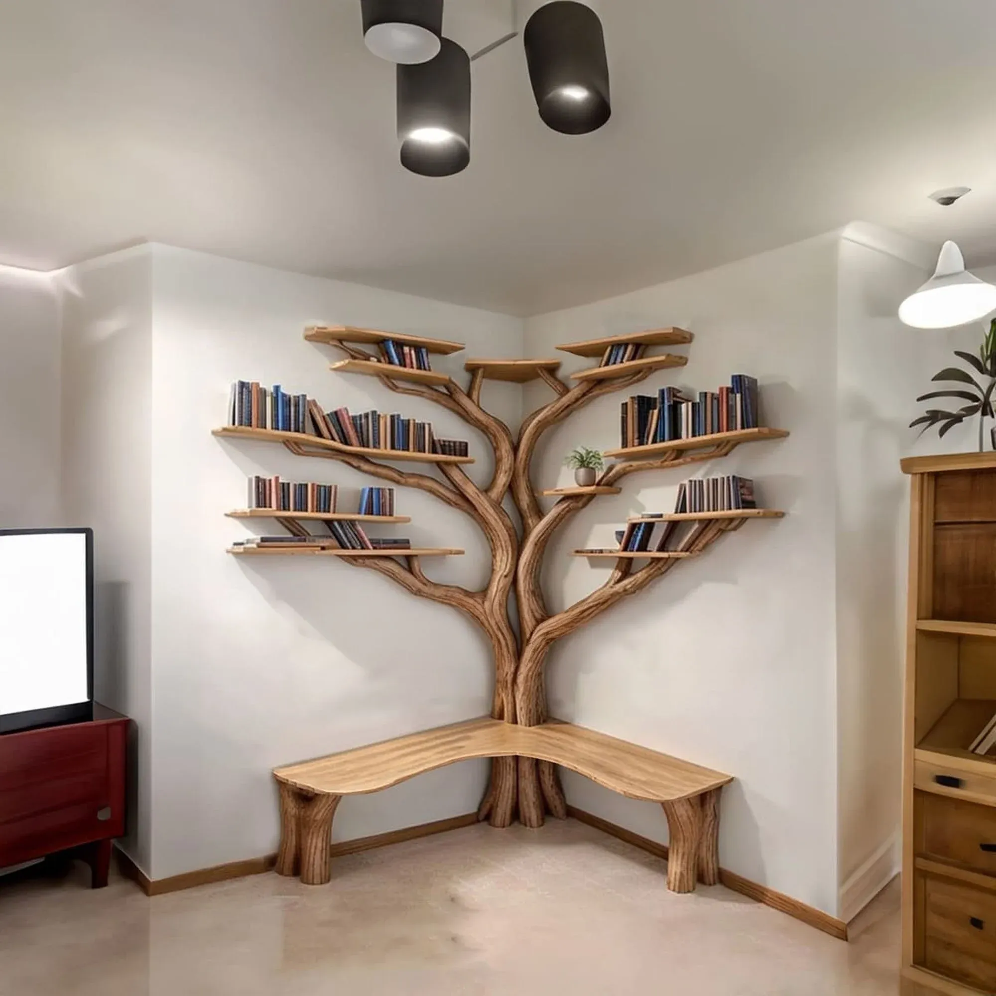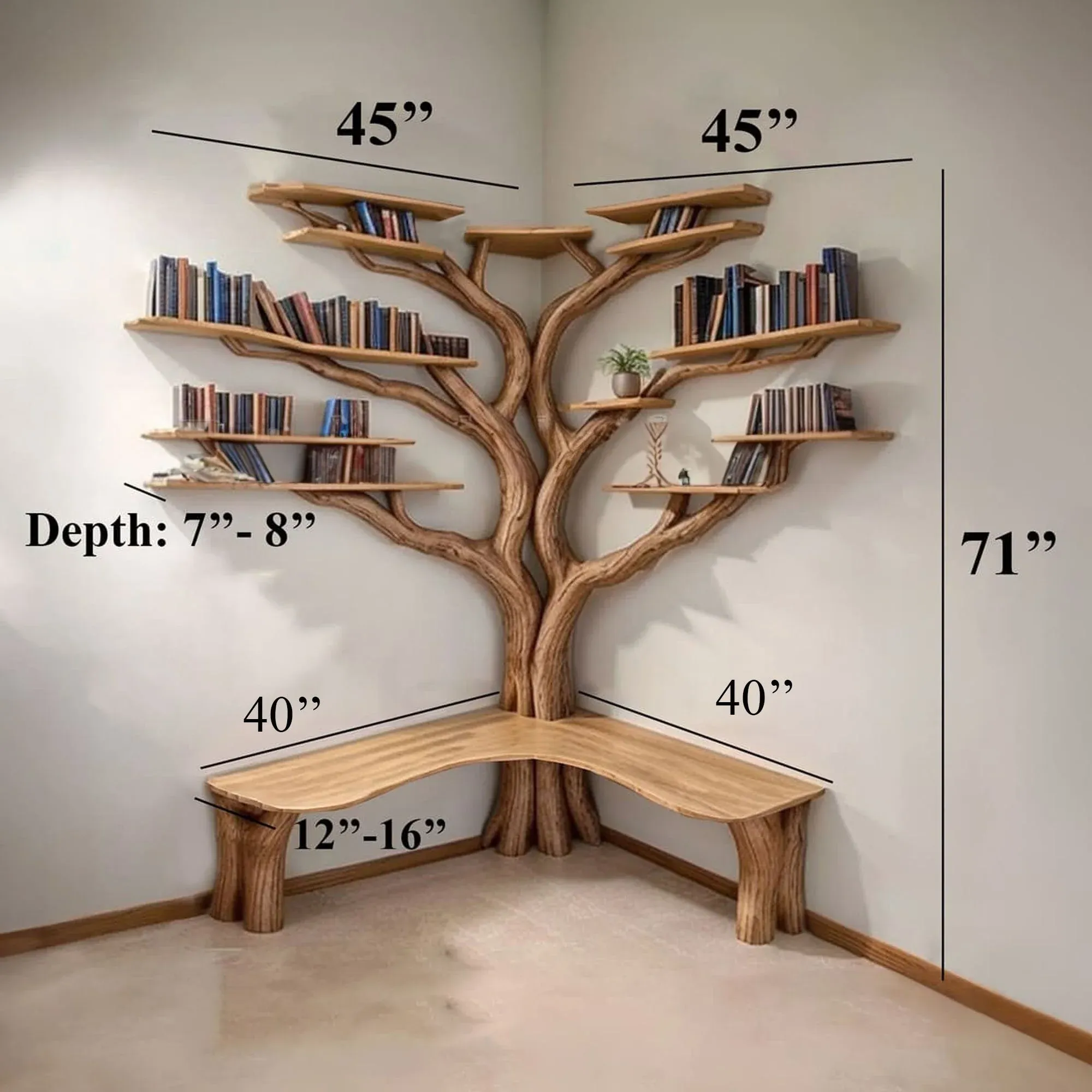 Tree Floating Corner Bookshelf With Corner Bench lshaped SINLTBS010