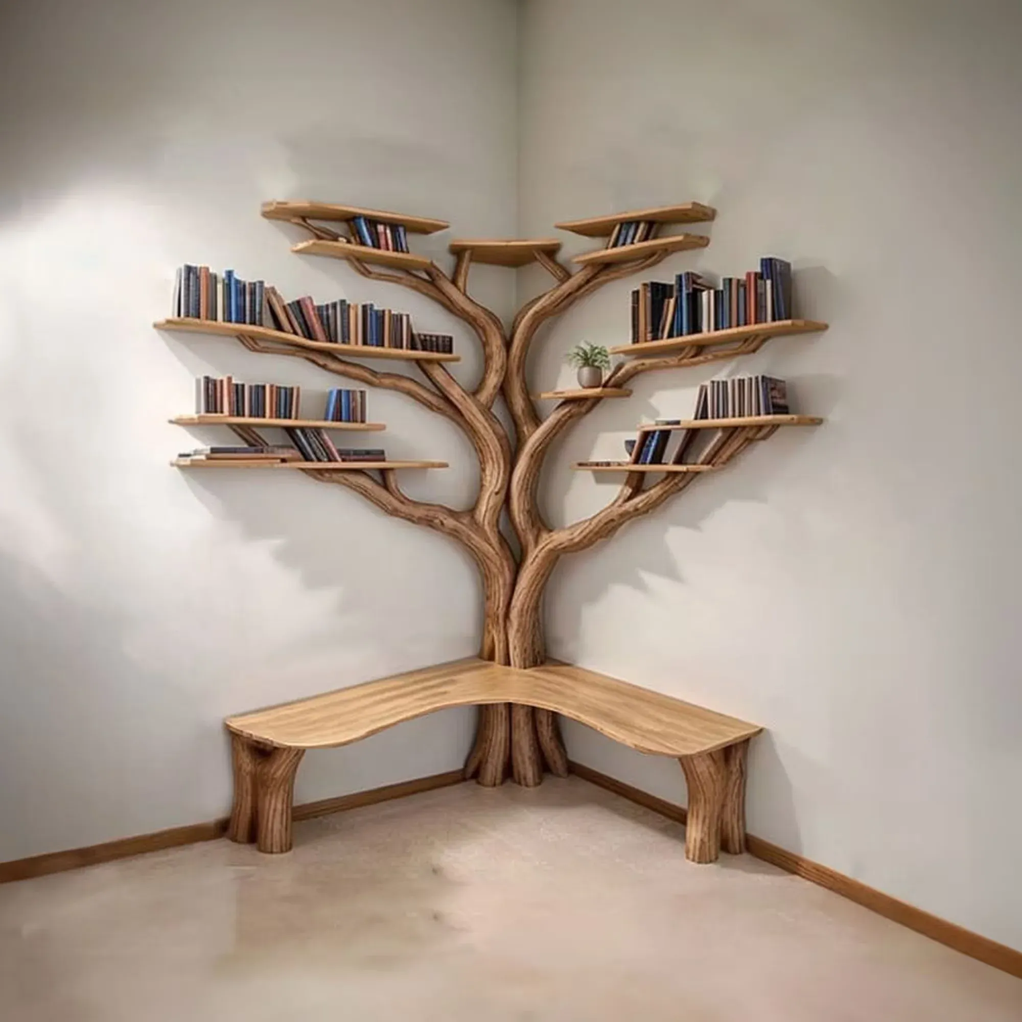 Tree branch floating corner shelf not only bring beauty but also enhance the utility of your space. You can creatively arrange books, decorations, personal items or even plants, taking advantage of every space effectively.