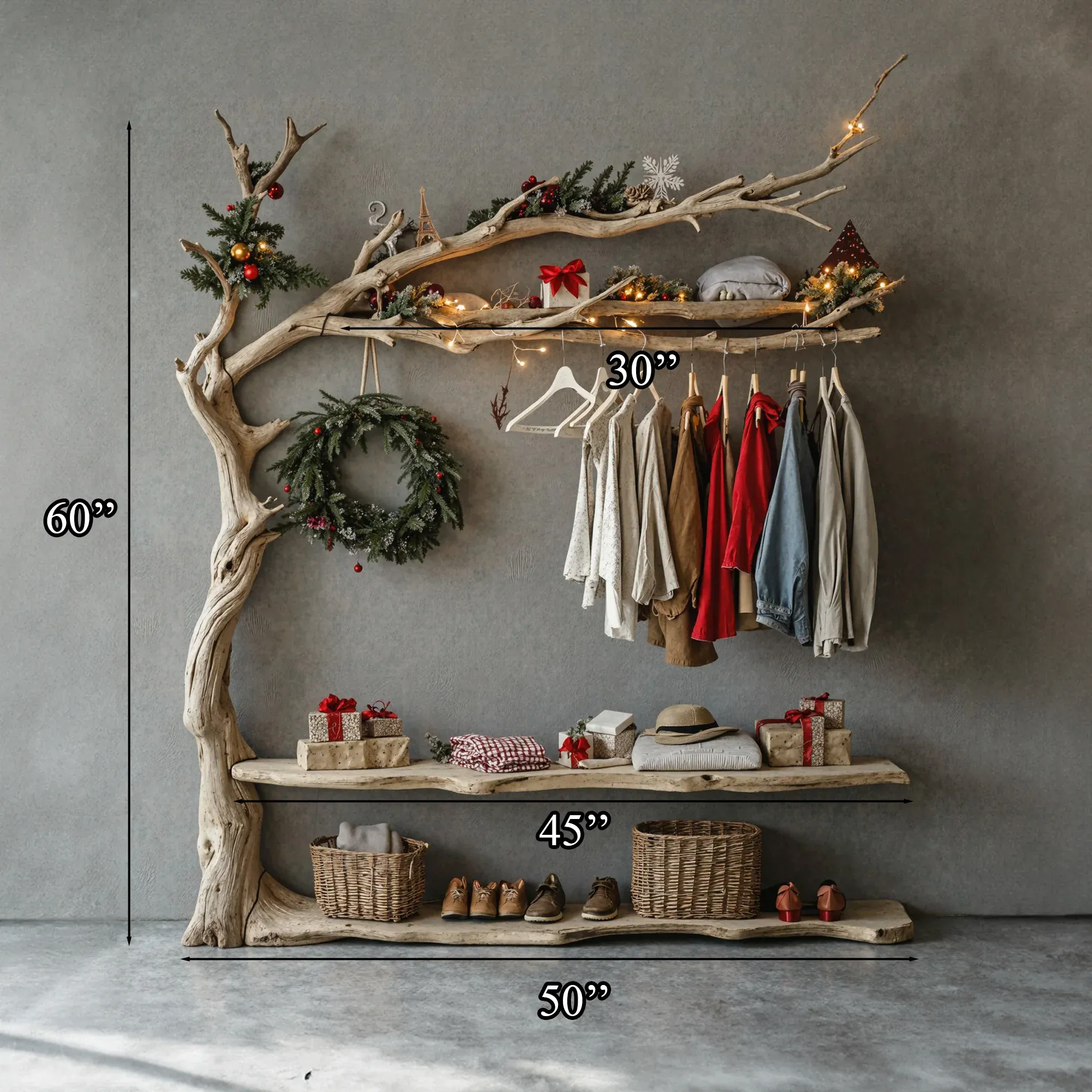 - Clothes Rack: The tree-like branches are cleverly designed as hanging bars, perfect for organizing coats, dresses, shirts, and more, ensuring your space stays neat.